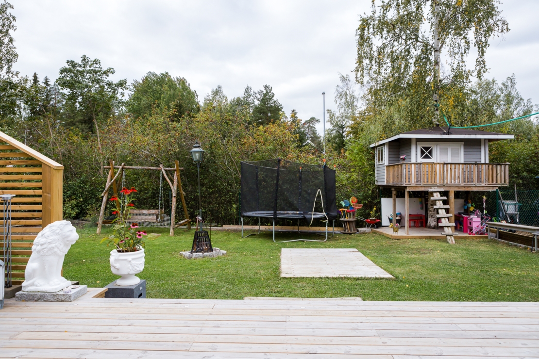 Varmt välkommen till denna smakfulla 1,5-plansvilla om 176kvm i fantastiska Margaretelund. Här är det bara flytta in och bo då villan är väl renoverad. Villan är fint planerad och perfekt för den stora familjen tack vare 5 möjliga sovrum. Tomten är friköpt och är på hela 563 kvm. På entréplan välkomnas du av en stor hall med god möjlighet för avhängning. På samma våning finner du även 2 möjliga sovrum, ett stort vardagsrum med matsalsdel, kök och groventré med tvättstuga. Från detta våningsplan kan du nå fastighetens 2 terrasser. På övervåningen finns det 3 sovrum, ett stort allrum, utgång mot balkong samt ett väl renoverat badrum. På fastigheten finns också parkering, lekstuga och förråd. Villans läge är helt optimalt och du har skola, förskola, närbutik och goda kommunikationer m.m. inom 1km. Och ca 3 km bort finner du Åkersberga centrum för pendeltåg samt även shopping. Kan det vara din drömbostad?
