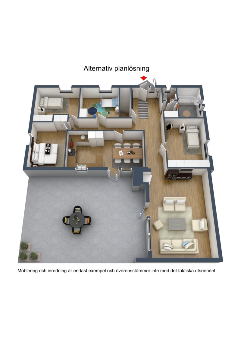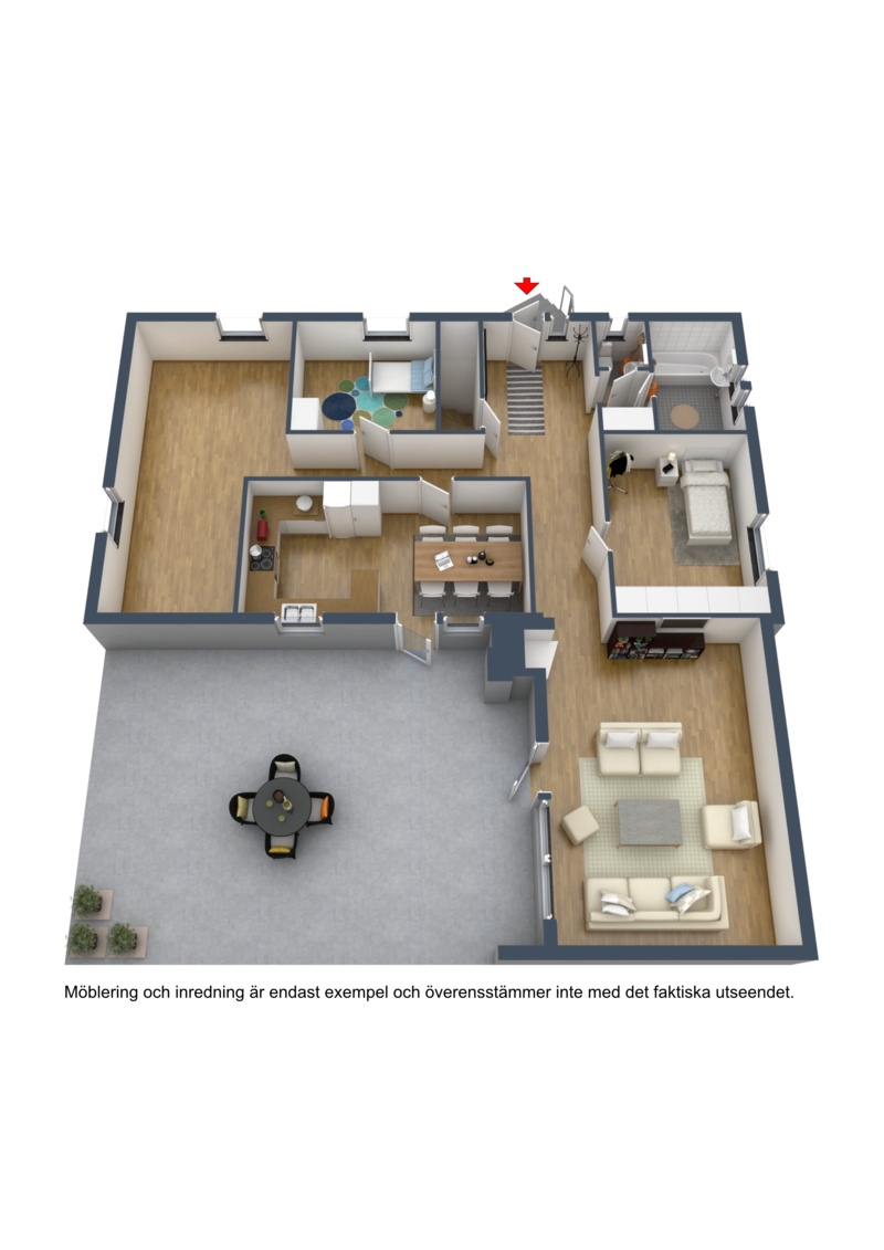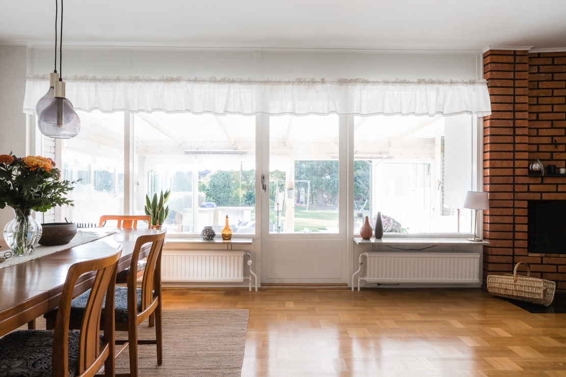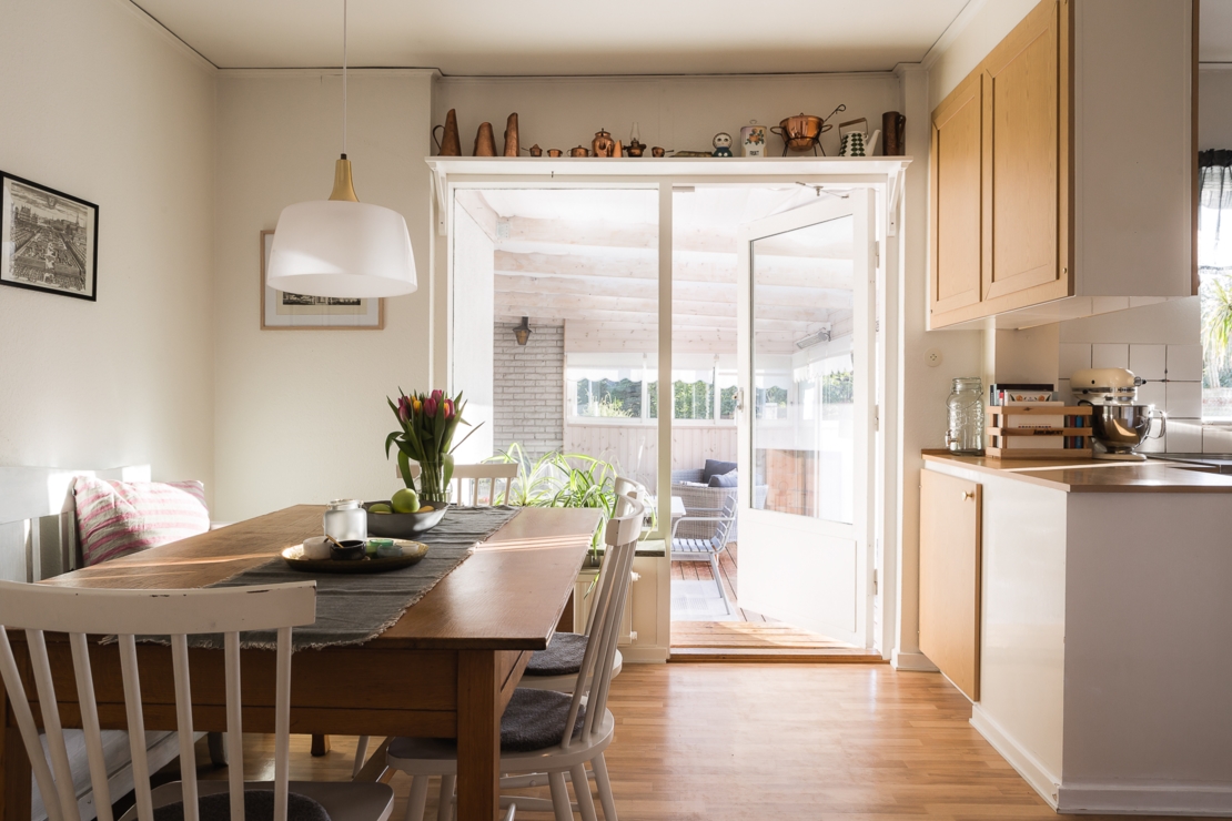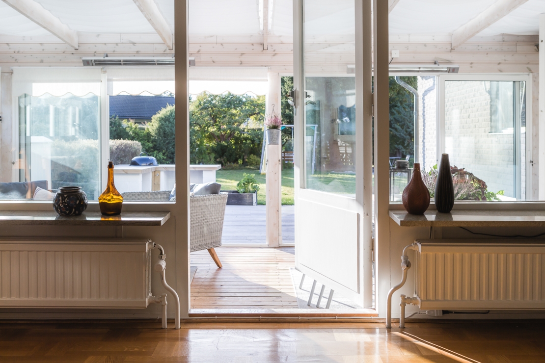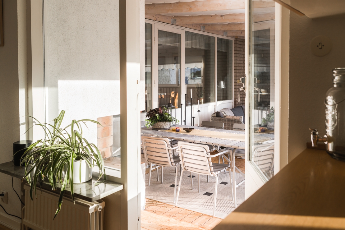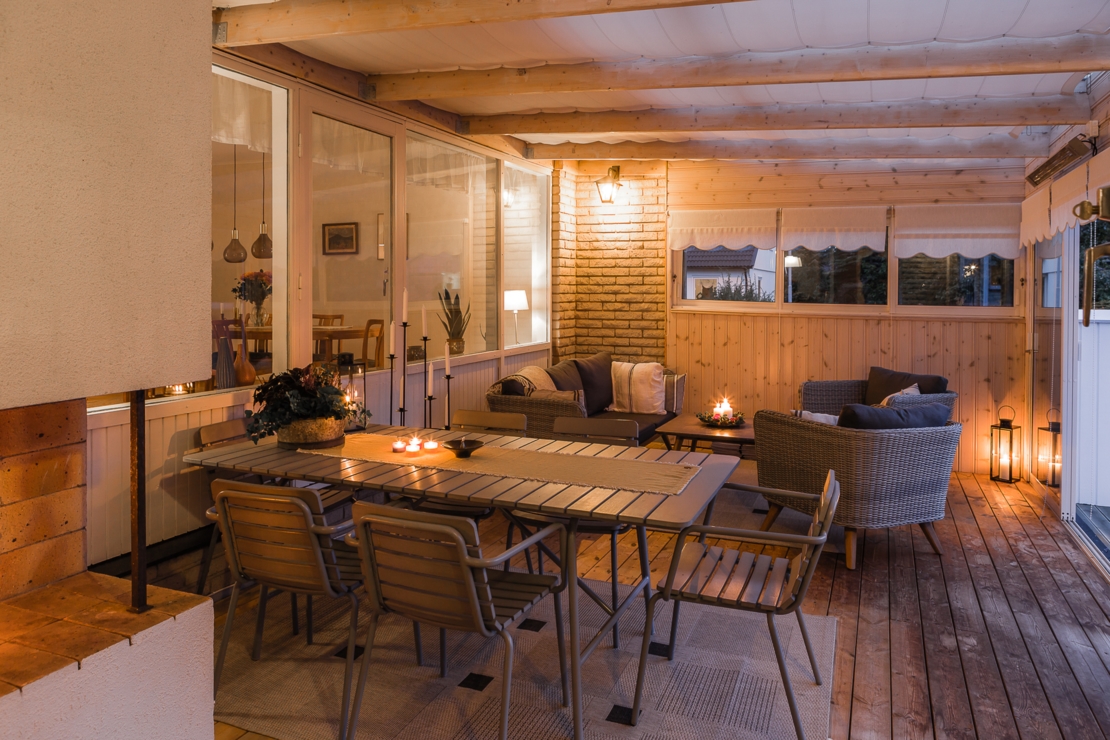 Till huset hör dessutom en mysig altan med plats för grill och ett stort och inglasat uterum. I uterummet finns öppen spis precis som i vardagsrummet för mysiga höst, vår och vinterkvällar.