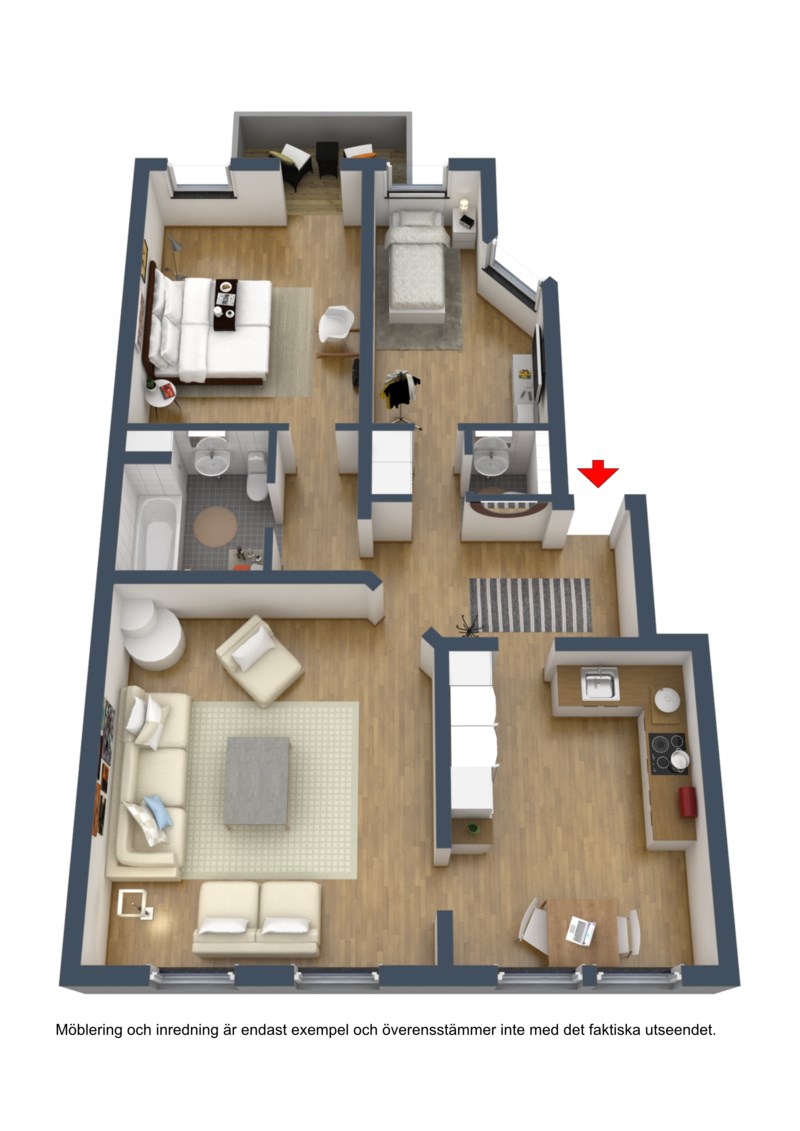 Beräknat enligt schablon på 3 boende i lägenheten.
