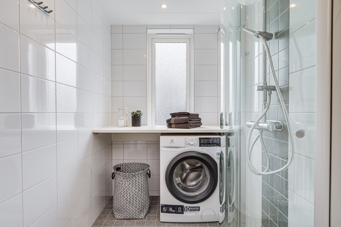 tvättstugor, samlingslokal, gästrum, bastu, cykelförråd och ”bibliotek”.