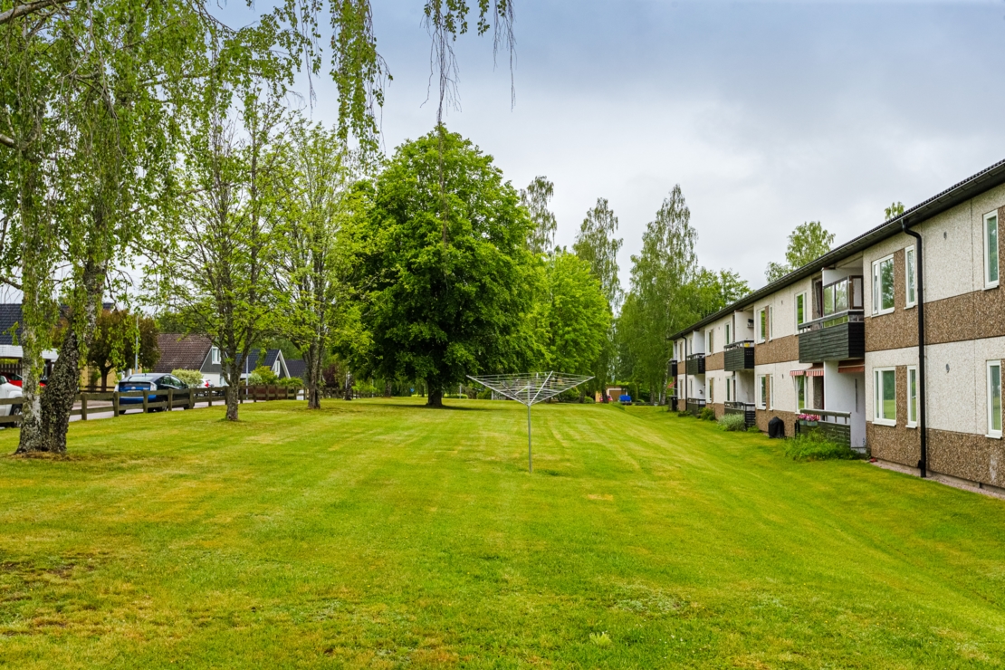 Sjöbol är naturskönt beläget mellan två sjöar med badplatser, promenad- och cykelvägar samt nära till golfbana och fritidsområdet Fylleryd. Vi har två koloniområden för dig som är odlingsintresserad. Mellan husen finns stora gräsytor och träd med lummig grönska där vi erbjuder fina grillplatser. Grundskola finns inom promenadavstånd.
