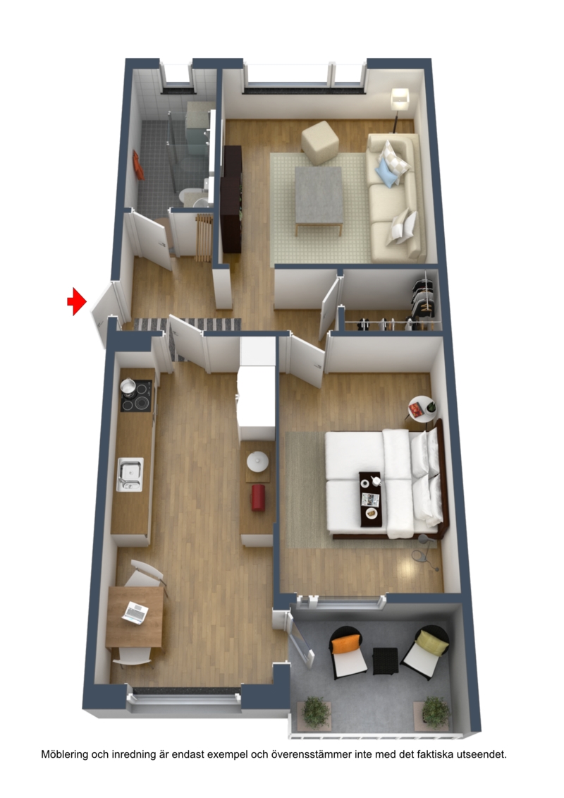 Ett gemensamt förråd för tillfällig förvaring av möbler finns även, dock ej