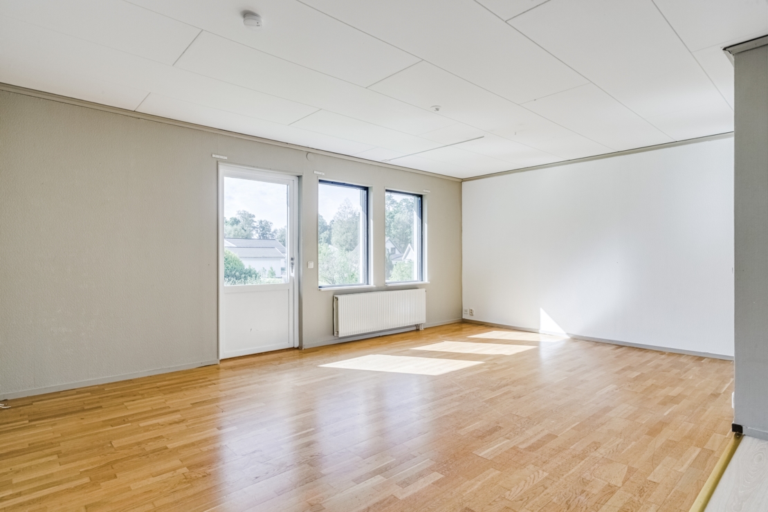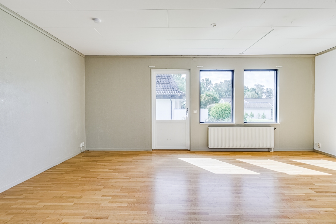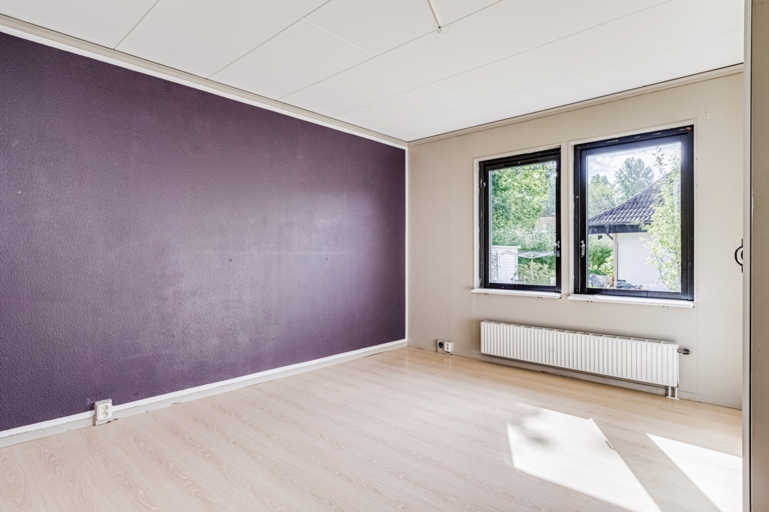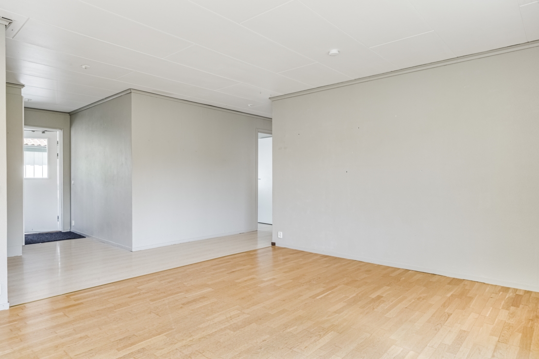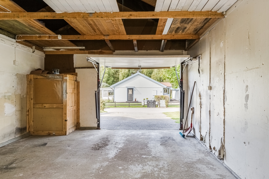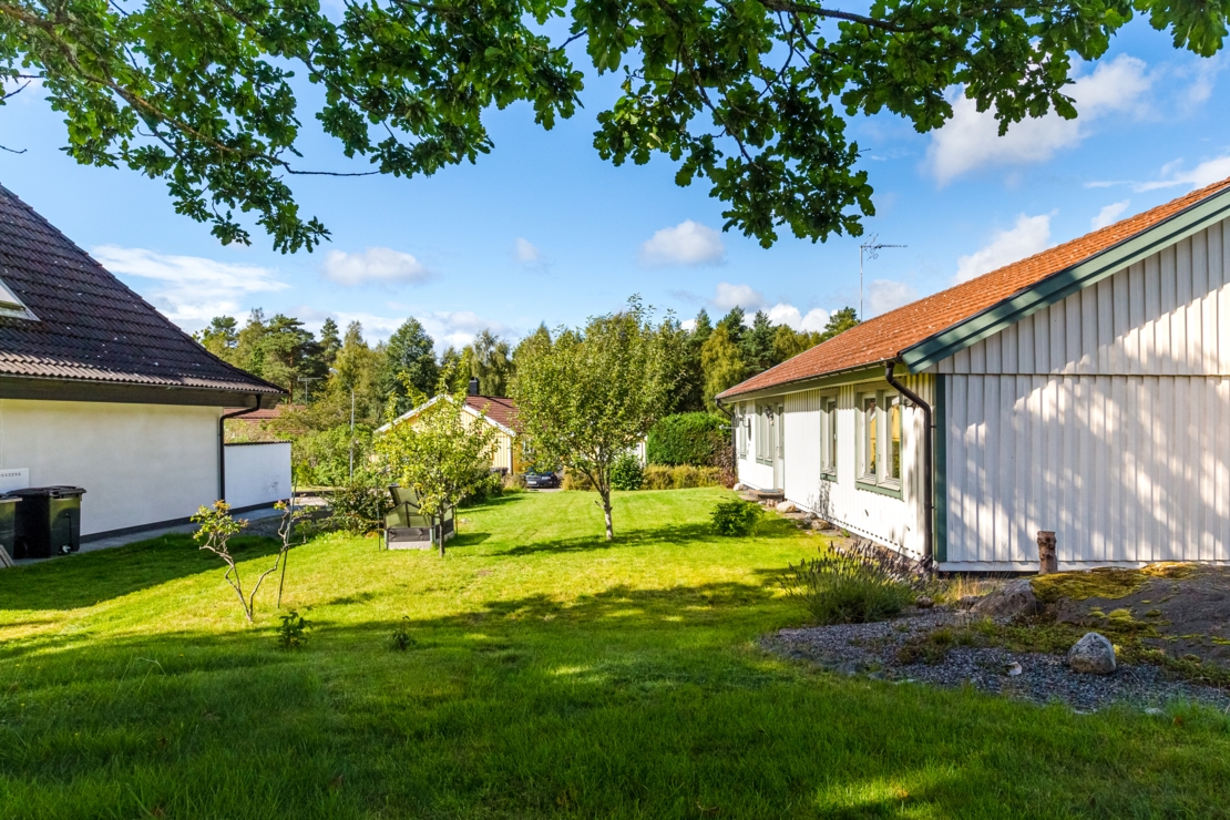 Ett välplanerat 1-planshus med avskilda delar i huset för olika behov och umgänge. I ena flygeln avskilt placerat ligger 4 sovrum samlade kring det stora badrummet med badkar och i den andra ett stort kök, tvättstuga, badrum med dusch och groventré. I mittpartiet finns vardagsrummet som präglas av en stor och öppen umgängesel i husets mitt som ger kontakt med entrésidan och trägården. Vardagsrummets fönster är stora och ger ett vackert ljusinsläpp. Garage och förråd finns på tomten. Fiber indraget.