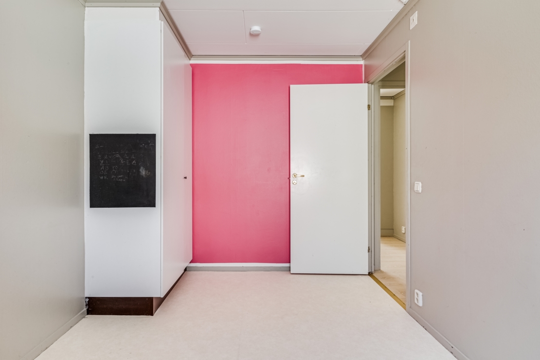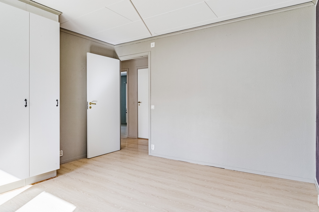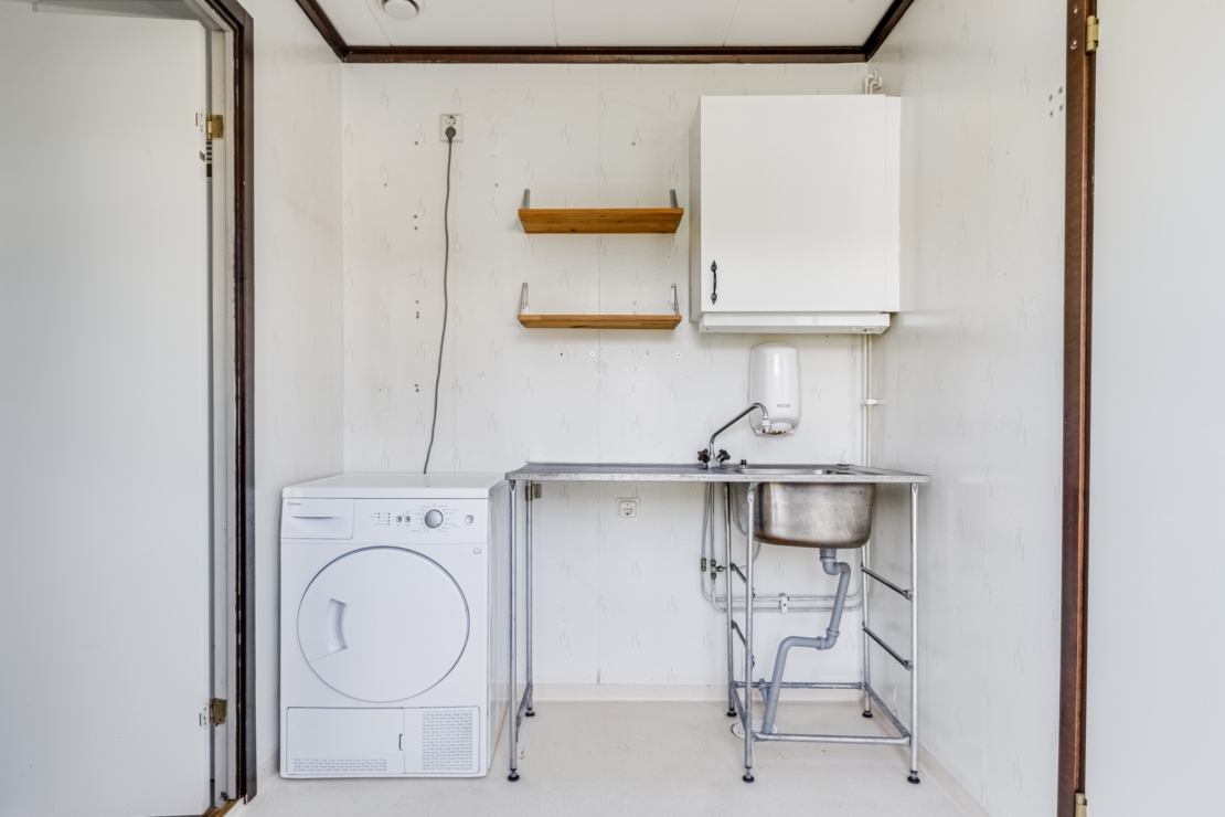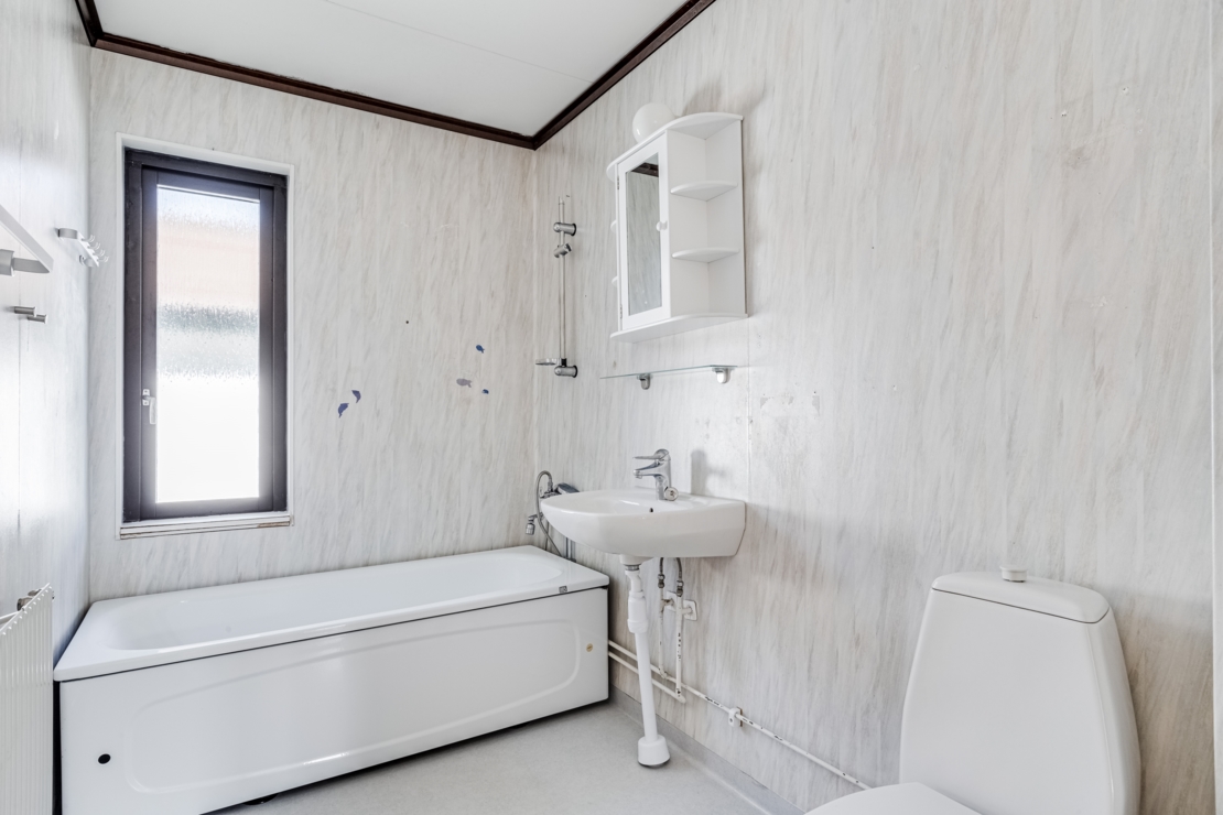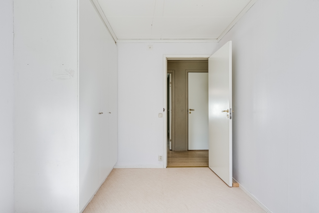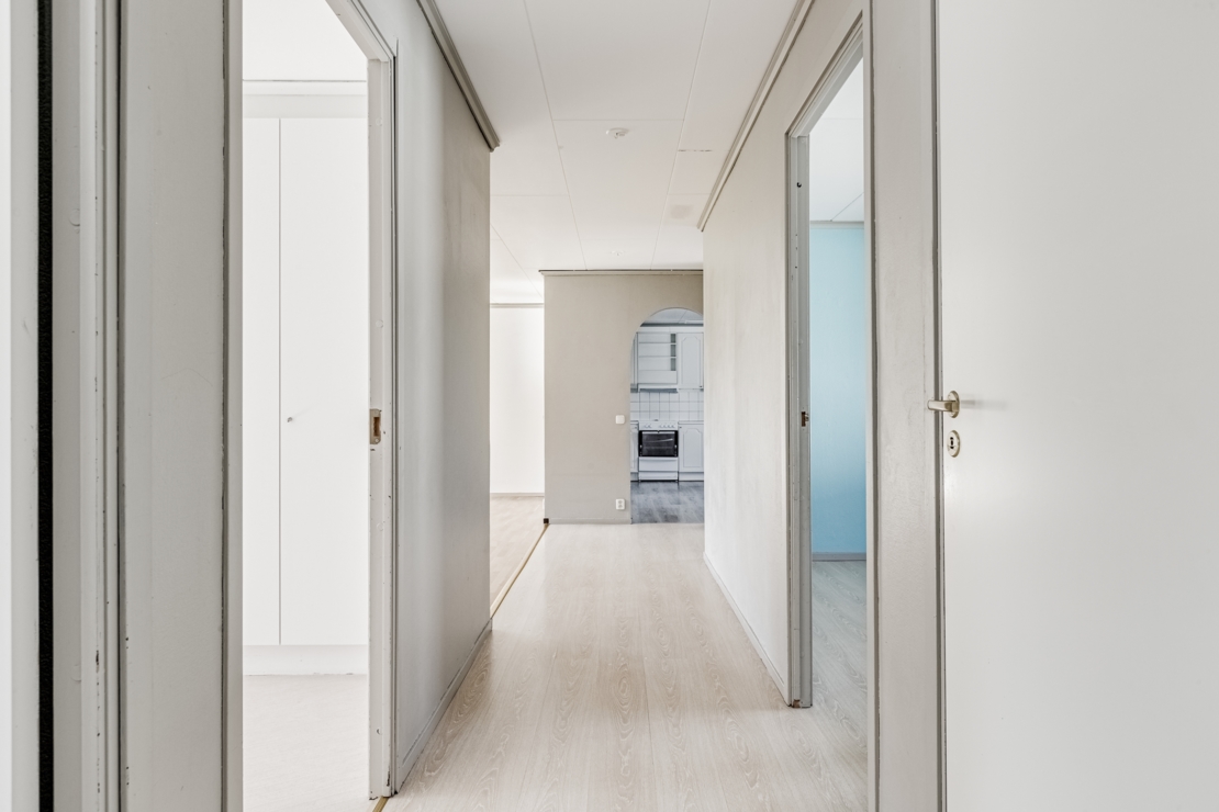 Ett välplanerat 1-planshus med avskilda delar i huset för olika behov och umgänge. I ena flygeln avskilt placerat ligger 4 sovrum samlade kring det stora badrummet med badkar och i den andra ett stort kök, tvättstuga, badrum med dusch och groventré. I mittpartiet finns vardagsrummet som präglas av en stor och öppen umgängesel i husets mitt som ger kontakt med entrésidan och trägården. Vardagsrummets fönster är stora och ger ett vackert ljusinsläpp. Garage och förråd finns på tomten. Fiber indraget.