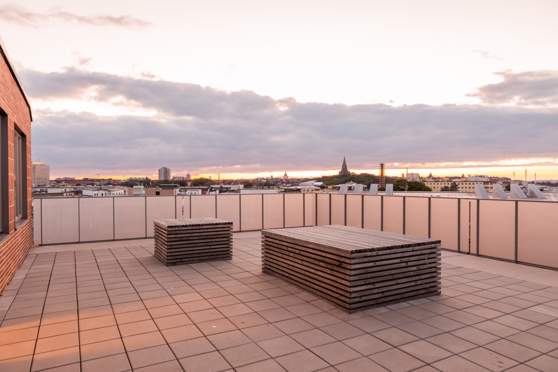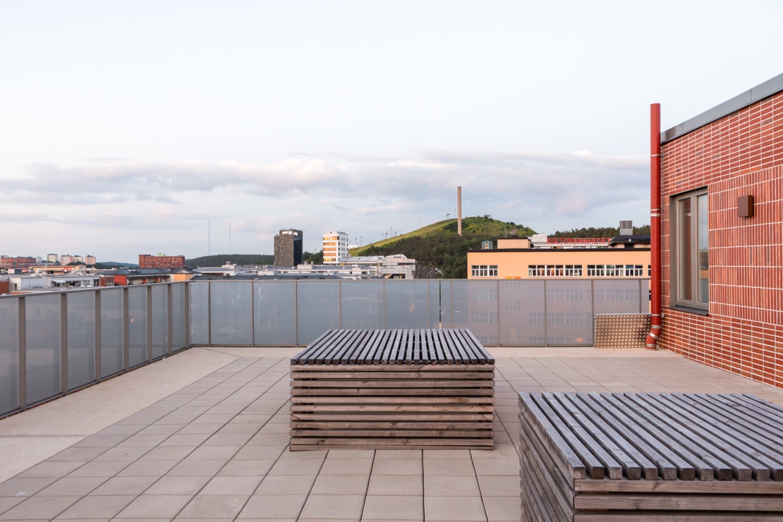 Tillhörande föreningen finns takterrasser i varje trapphus. Vid en av dem finns ett gemensamt pentry. På innergården finns det gemensamma uteplatser, planteringslådor, lekplats samt cykelställ. I föreningen finns också möjlighet att disponera över en egen odlingslott om så önskas.