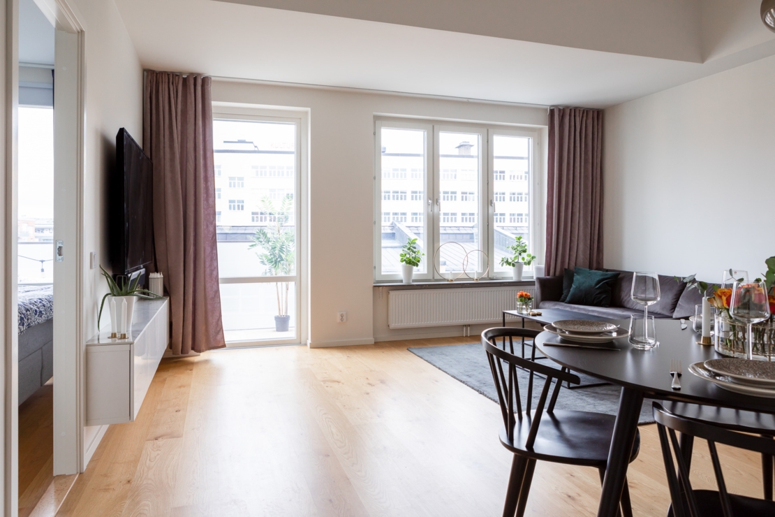Varmt välkommen till denna magiska lägenhet om 55 kvadratmeter högt upp i huset. Lägenheten disponeras som 2 rum och kök och till lägenheten hör ett källarförråd. Lägenheten har ljusa materialval och bra ljusinsläpp vilket leder till att du får en mysig känsla här. Dessutom har lägenheten en stor balkong i bästa läge. Vad mer kan man önska sig?