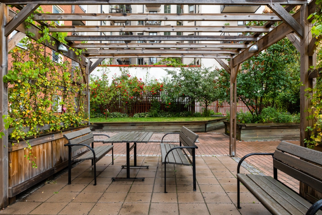 2012 Staket har gjorts avtagbart vid rökluckor på gården för att undvika förstörelse vid eventuell brand