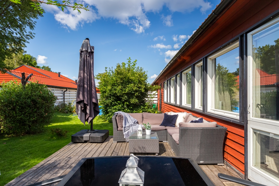 Bo bekymmersfritt i bostadsrätt med villakänsla! Här ryms den stora eller lilla familjen tack vare de yteffektiva kvadratmeterna som erbjuder ett flertal rymliga sovrum. På sommaren tillbringar du med fördel dina dagar på den ljuvliga trädgårdstäppan som är insynsskyddad. Varför inte börja dagen på trädäcket med en kopp nybryggt kaffe? Bostaden har genomgått en smakfull renovering och här är det bara att flytta rakt in!
