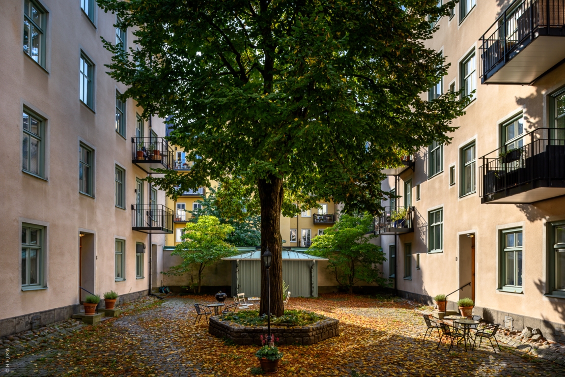 - Tvättstuga i gårdshus utrustad med 2 tvättmaskiner, ett torkskåp, en torktumlare samt en mangel.- Barnvagnsrum i gårdshus. Cyklar på gården.- Innergård med utemöbler om sommaren.