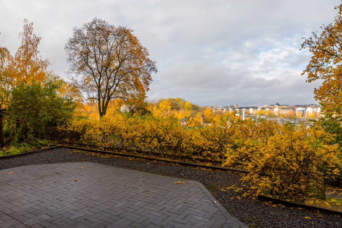 Skuldfri och välskött förening som har en mycket fin grönskande innegård samt en uteplats med utsikt mot Långholmen och Riddarfjärden på framsidan av huset.