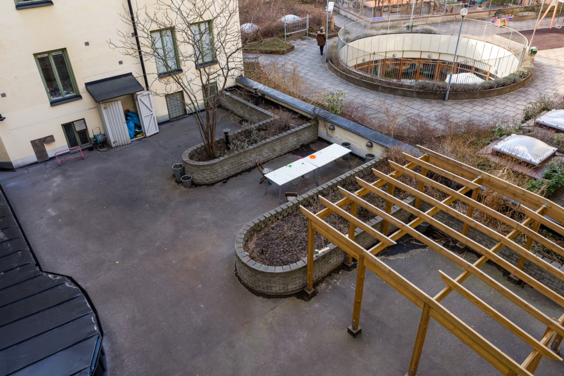 tvättstuga, två innergårdar med utemöbler/grillmöjlighet och cykelrum.