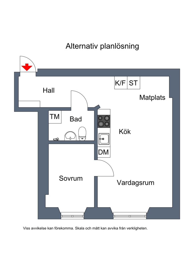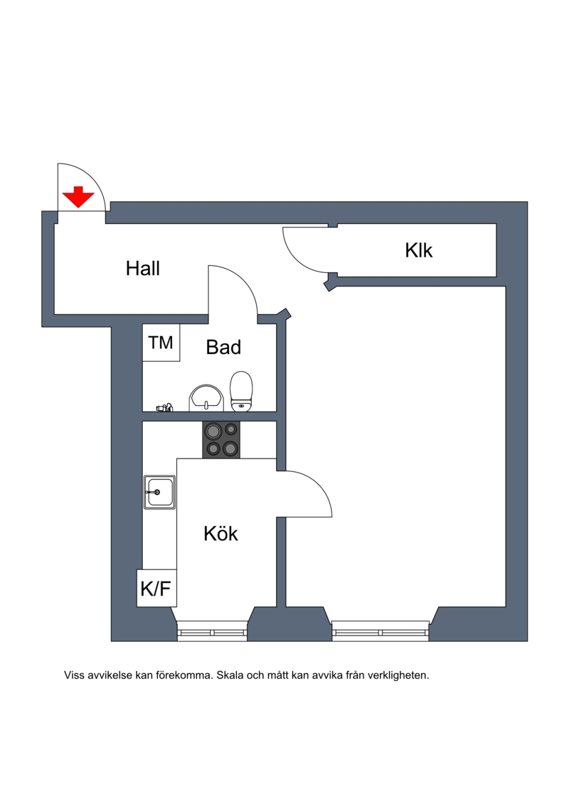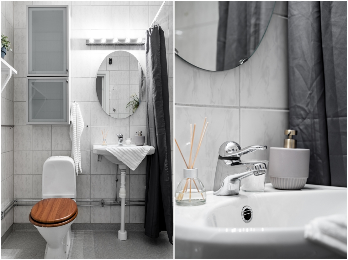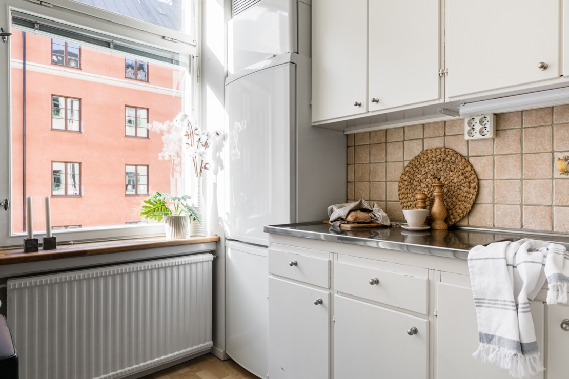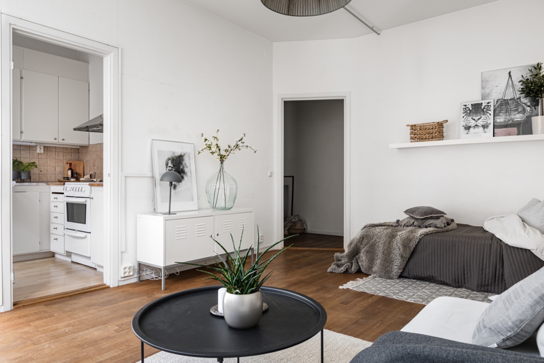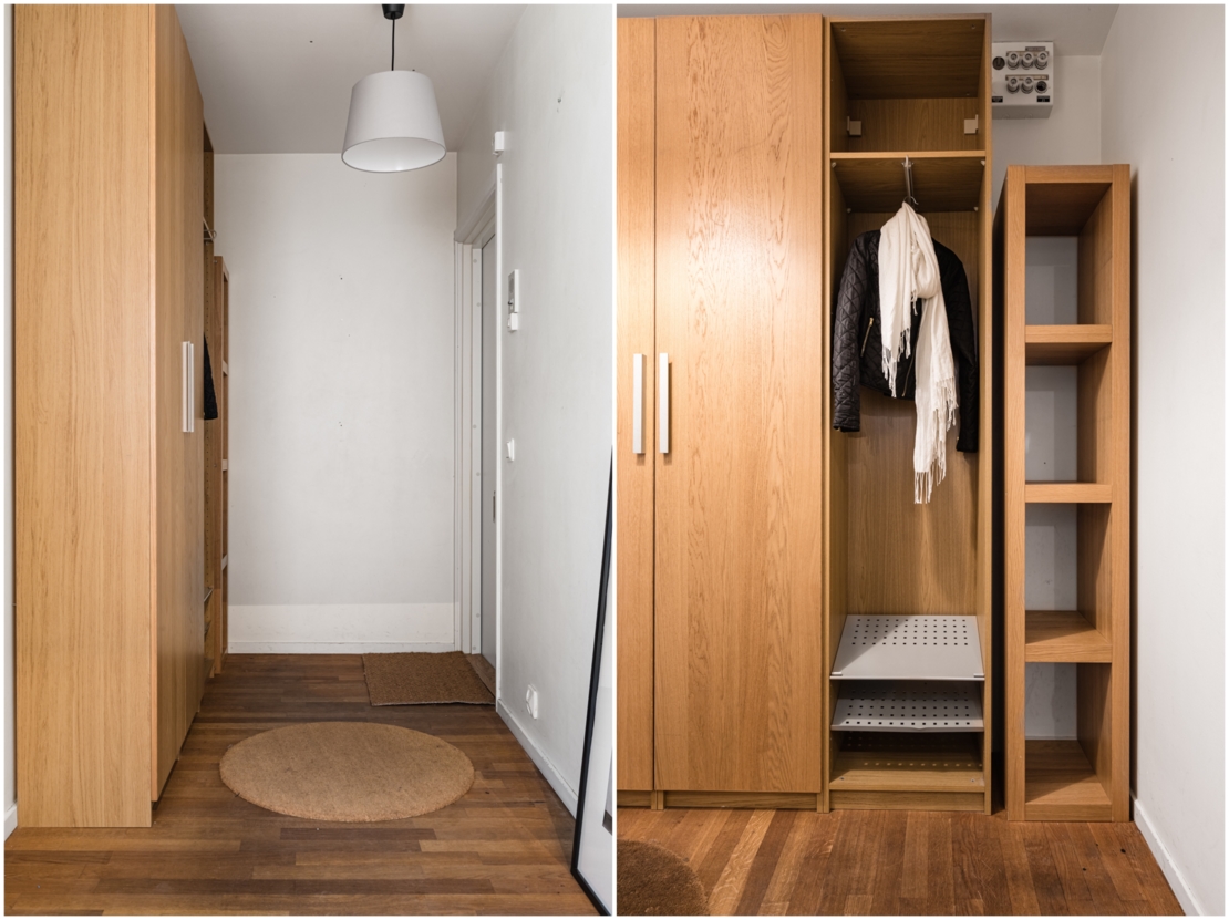 Rymlig hall beklädd med fin ekparkett och gott om plats för avhängning samt med stor walk-in closet för ytterligare avhängning/förvaring. Yteffektivt allrum/rum med samma fina parkett som hallen och gott om ljusinsläpp från fönster mot lugna Pålsundsgatan. Här finns plats för både sovdel och mysig soffhörna. Luftigt kök med utrymme för matplats. Rymligt kaklat badrum utrustad med duschhörna och tvättmaskin.
