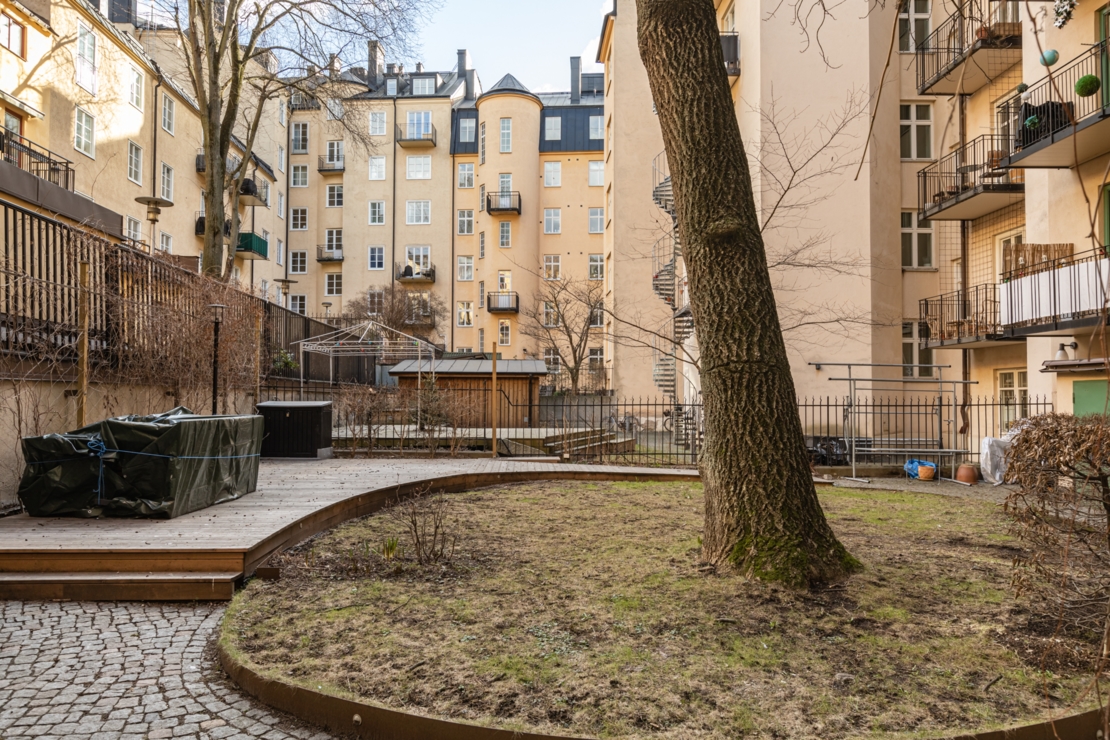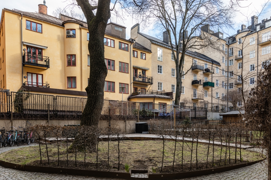 Bostadsrättsförening med mycket god ekonomi och fin arkitektritad innergård för härliga sommarkvällar i gott sällskap.
