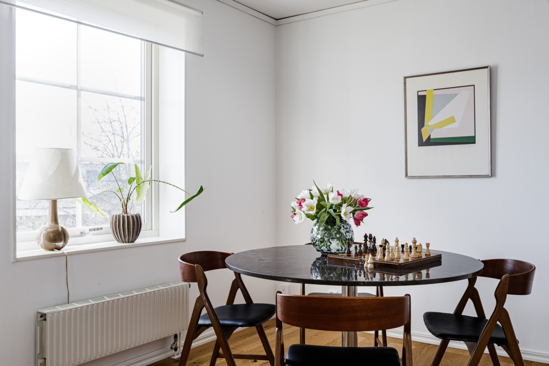 Bostaden erbjuder bland annat 2 kakelugnar, ett luftigt och ljust vardagsrum (ljusinsläpp från två olika väderstreck), matsal i anslutning till vardagsrummet, 2 väl tilltagna sovrum, kök med bra arbetsytor, helkaklat badrum med tvättmaskin & torktumlare samt en härlig balkong mot innegården. Här bor ni bekvämt på lugn gata med närhet till citypulsen, strax utanför dörren finner ni all tänkbar service och goda kommunikationer.