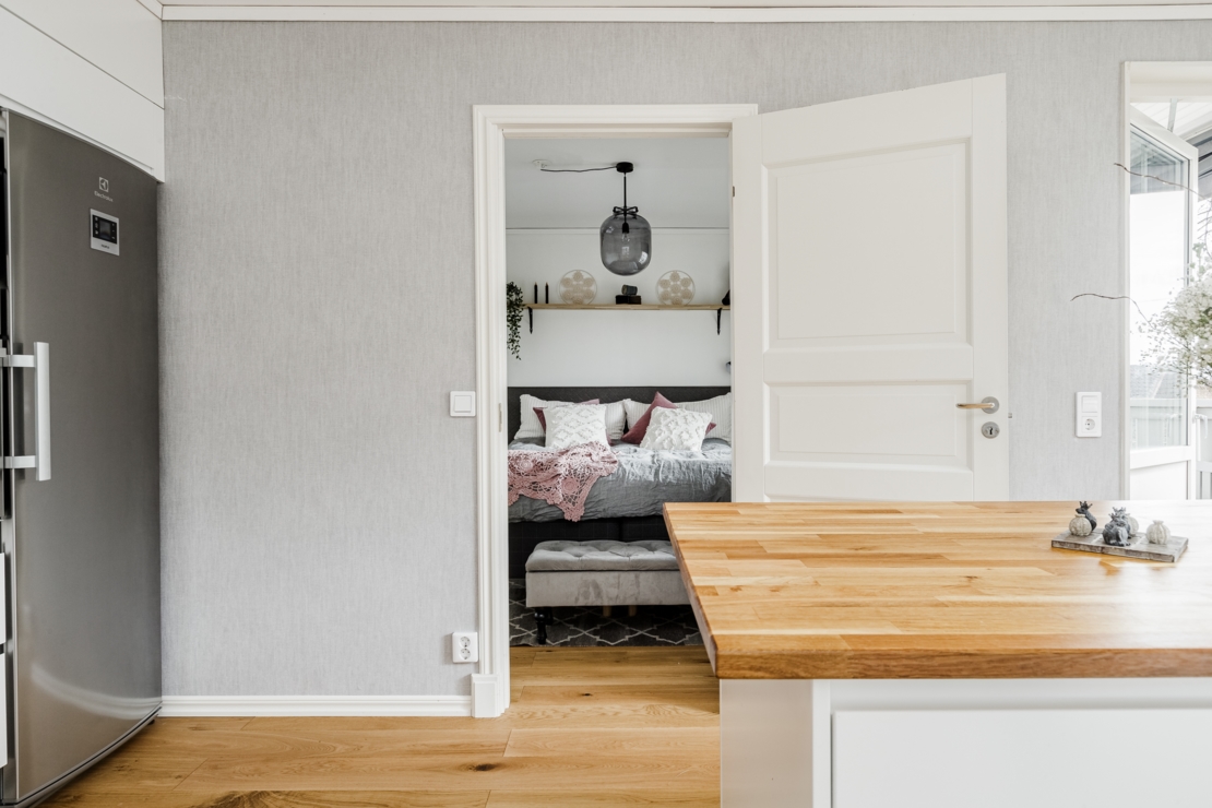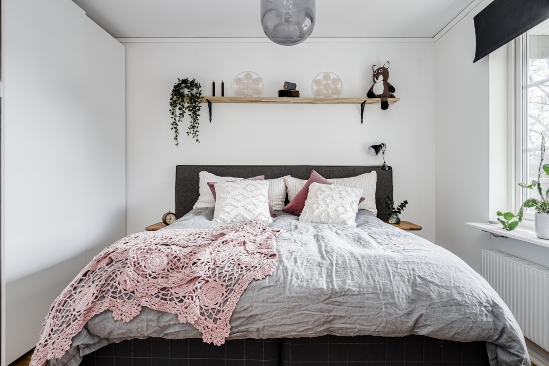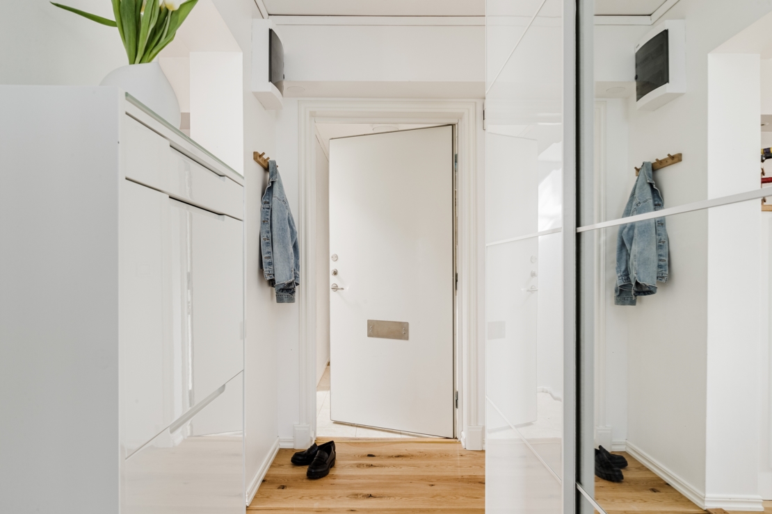 Här finns goda avhängningsmöjligheter samt en stor garderob med sjutdörrar.
