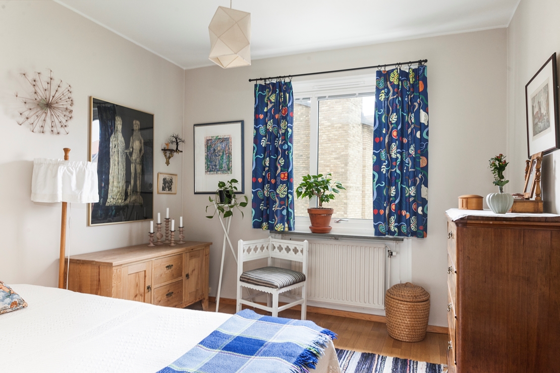 Rymligt sovrum med utsikt över den lugna innergården samt ett ordentligt parkettgolv och ljusa väggar. Här ges plats för såväl säng, sängmöbler samt egen förvaringslösning.