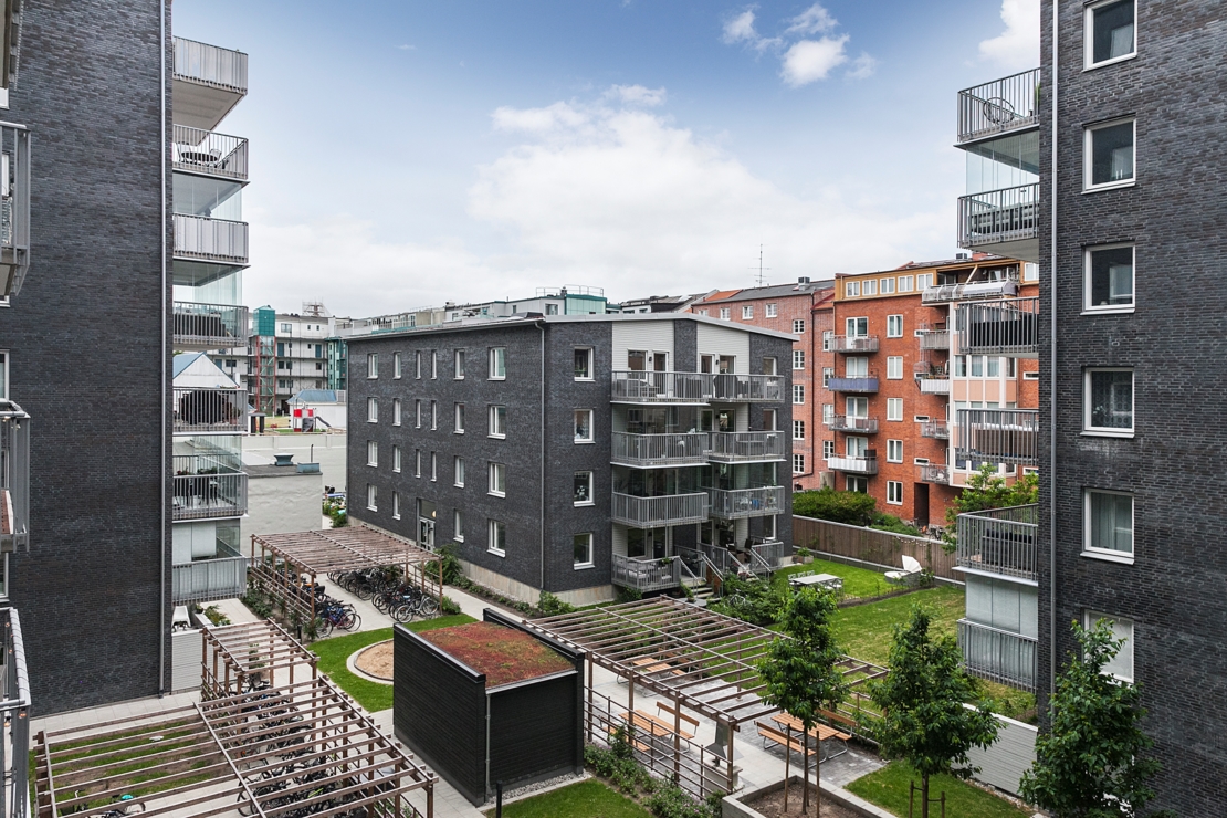Gemensamma utrymmen Föreningen erbjuder en grönskande och lummig innergård med plats för att parkera cyklar under vackra pergolor. I föreningen finns de även miljörum, övernattningslägenhet mot en kostnad på ca 250kr/natt, cykelrum, barnvagns-/rullstolsförråd, städrum. Ni finner även en cykelservicestation utrustad med pump, vatten och verktyg. Alla lägenheter har ett förråd som ingår. Extra lägenhetsförråd finns att hyra.