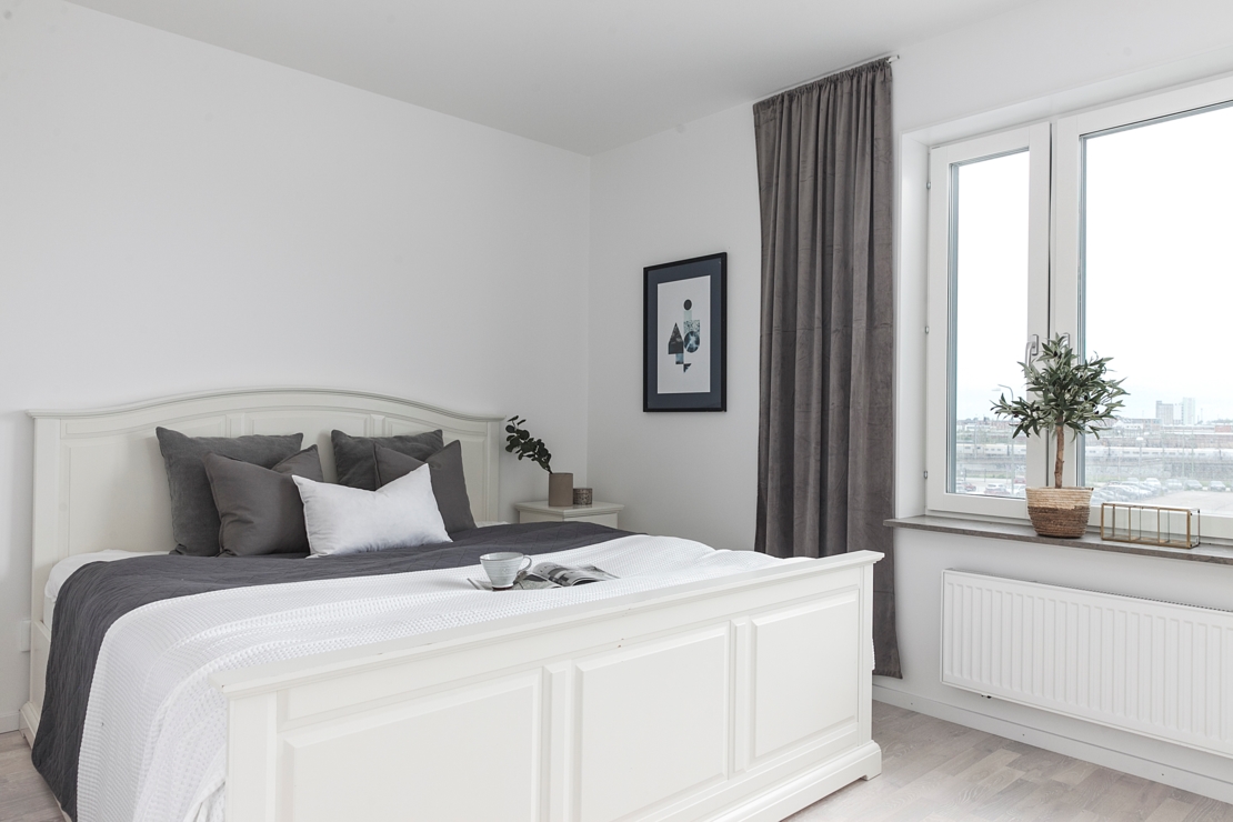 Stort sovrum med härligt ljusinsläpp och plats för dubbelsäng samt egen garderobsförvaring.