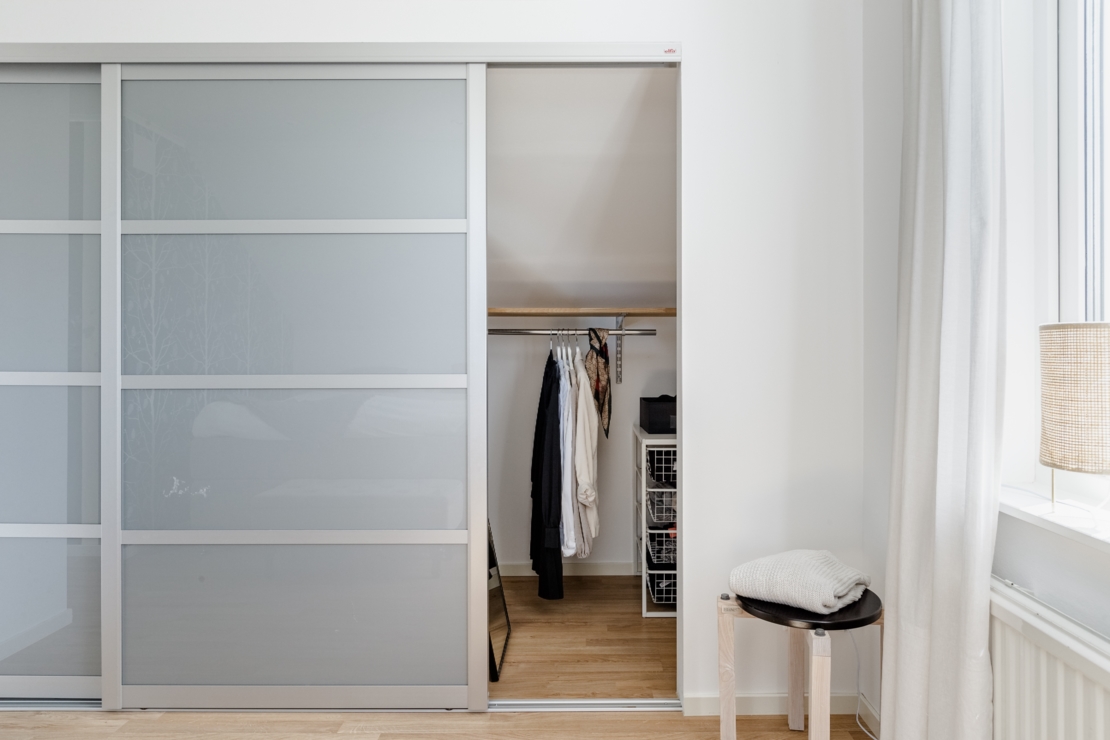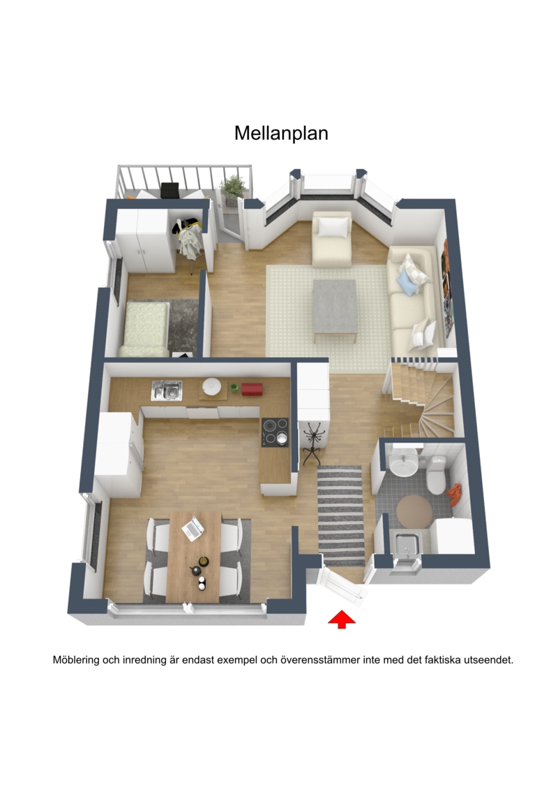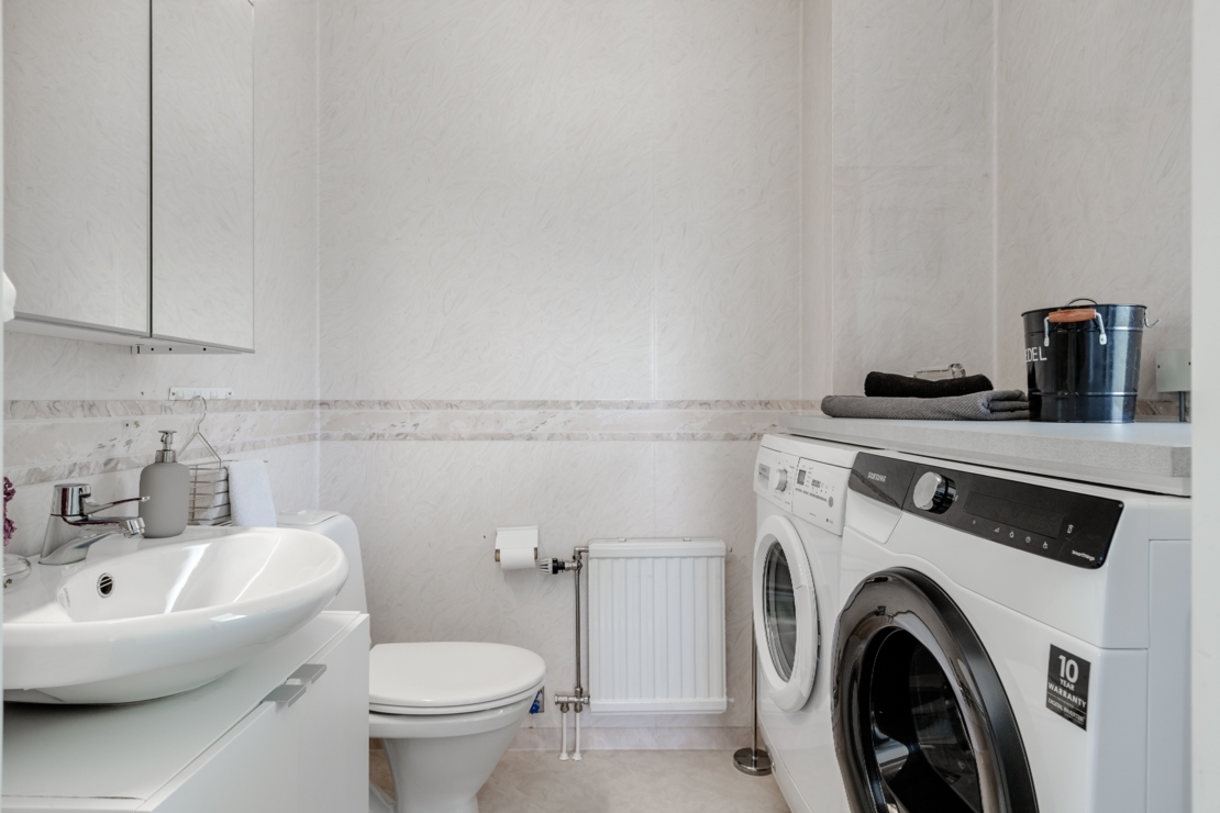 Lägenheten disponeras väl med två sovrum, gott om plats för förvaring. Kök med matplats. Ljust vardagsrum. Två badrum.