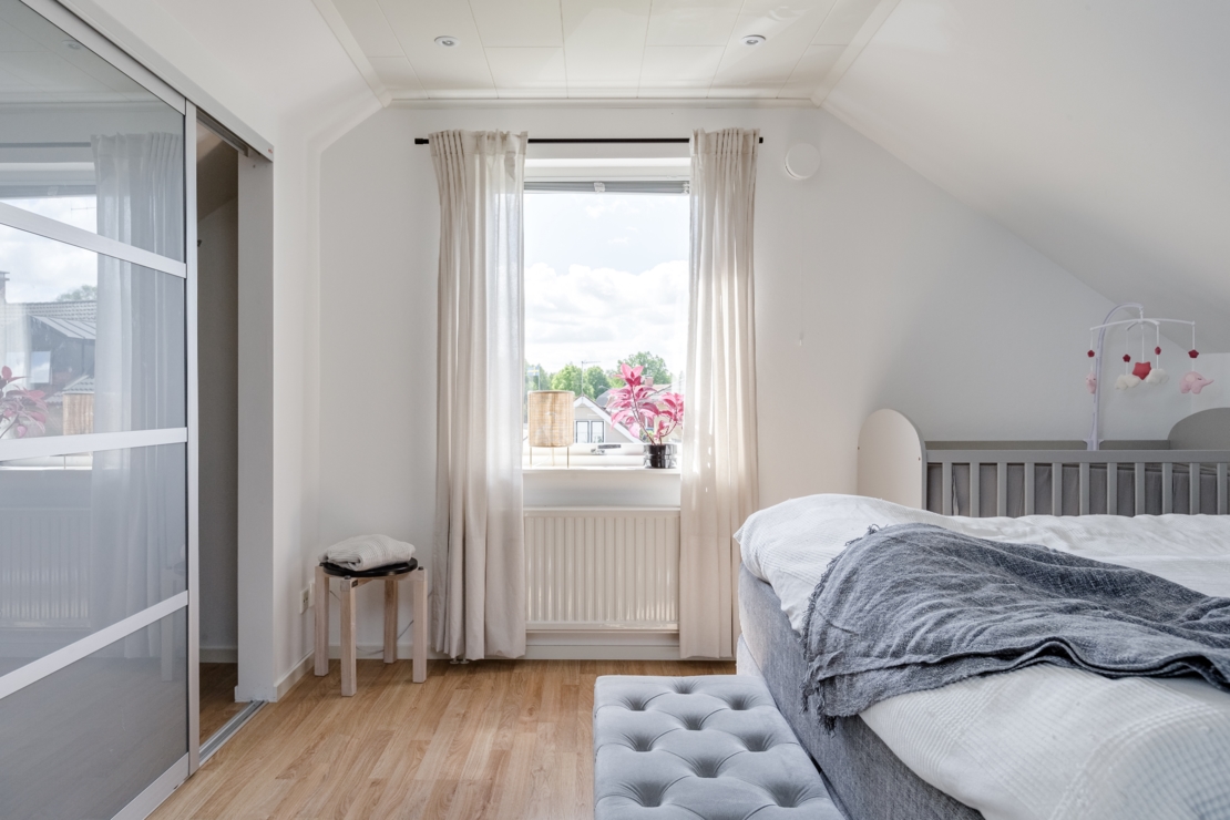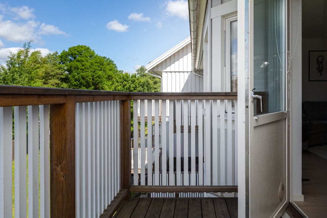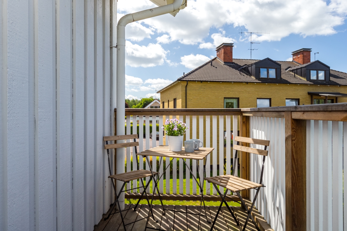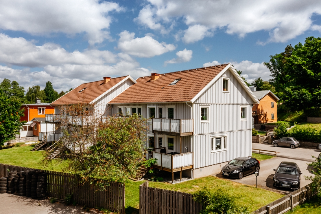 På andra våningen finner vi denna ljusa och genomgående bostad med tre rum och kök. Stora fönsterpartier skänker bostaden ett härligt ljusinsläpp. Lägg därtill en mysig balkong mot innegården.