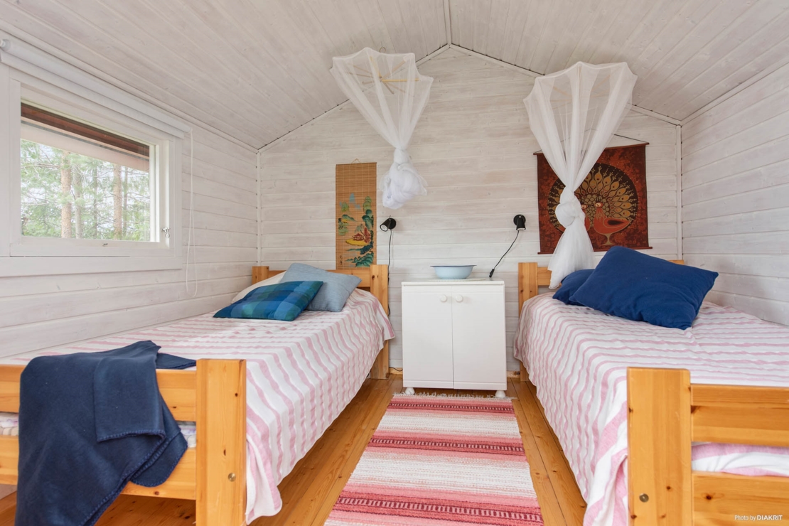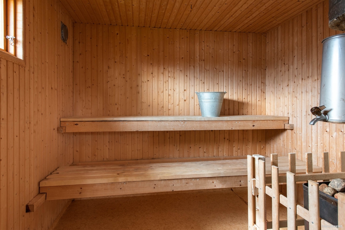 På tomten finns även en gäststuga, vedeldad bastu, vedbod, förråd, utedass, eldstad, brygga och en flaggstång.