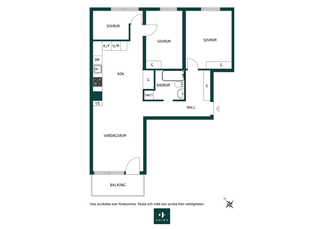 Från den välkomnande hallen kommer du in i det förträffliga vardagsrummet med stora fönster och plats för allehanda möblemang. I anslutning finns den stora balkongen som vetter åt sydväst med härlig kvällssol.
