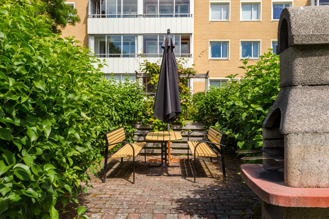 Förutom alla bekvämligheter i området bor du i en stabil förening med god ekonomi (skuldfri), låga avgifter, fin innergård och en övernattningslägenhet som kan hyras för gäster till föreningens medlemmar.