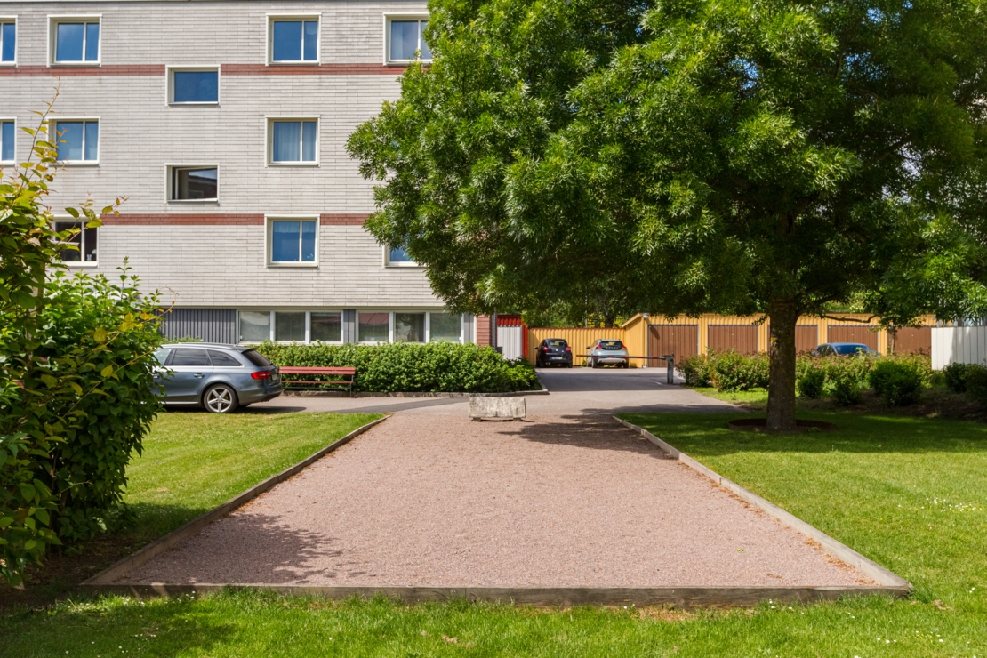 I föreningen finns bland annat cykelförråd, miljöhus, gym och övernattningslägenhet. Trevliga innergårdar på området med grillplats, lekplats och boulebana.