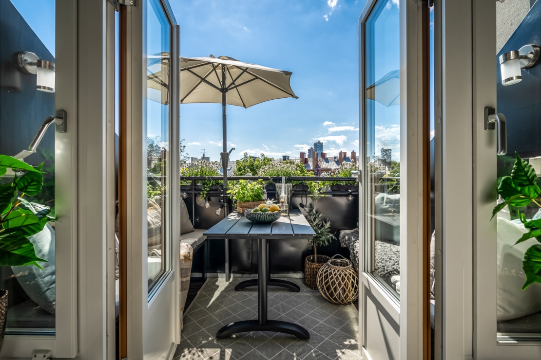 Varmt välkomna till denna stilfulla vindsvåning om 74 + 22 kvadratmeter fördelat på 2,5 rum med stor terrass i bästa solläge. Bostaden är mycket genomtänkt och har renoverats för att genomgående leverera högklassig komfort och kvalitet i såväl planering och materialval för maximal funktionalitet. Fastigheten är i mycket gott skick med stora renoveringar bakom sig. Här bor ni i centralt attraktivt område med utmärkta kommunikationer i direkt närhet.