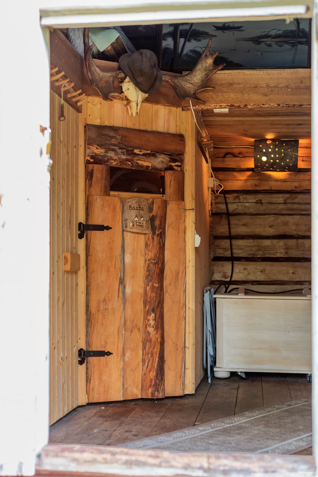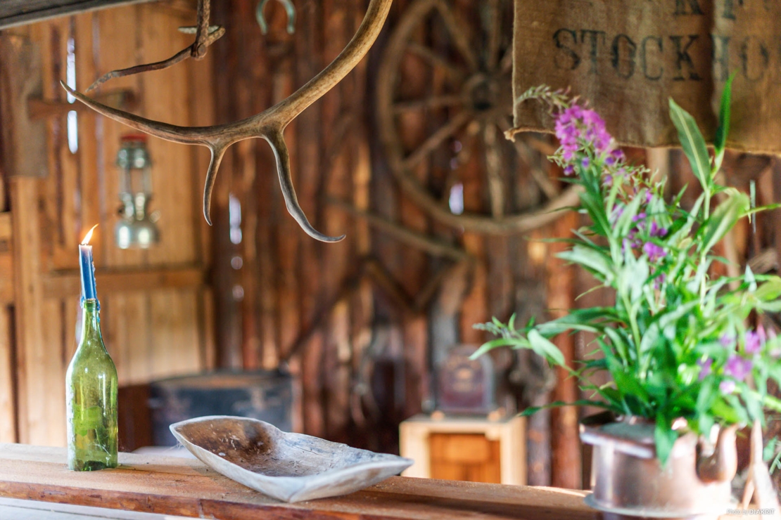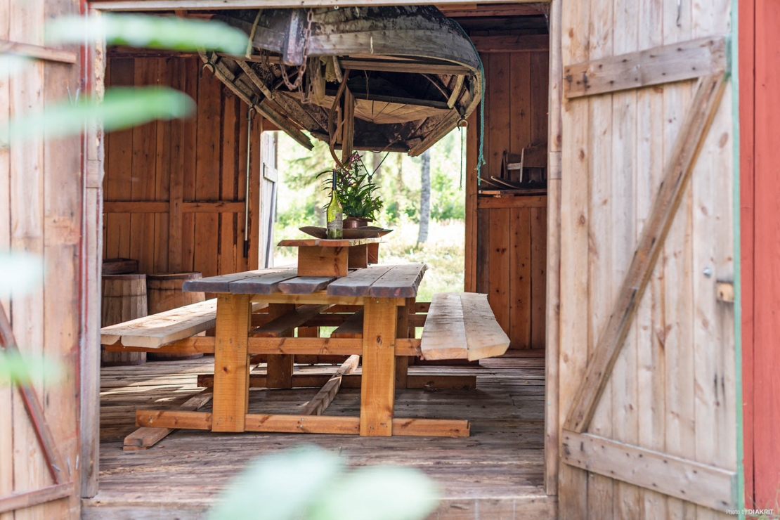 Den större ladan uppdelad i förråd och festlokal. Ytterligare förråd står nära tomtgränsen.
