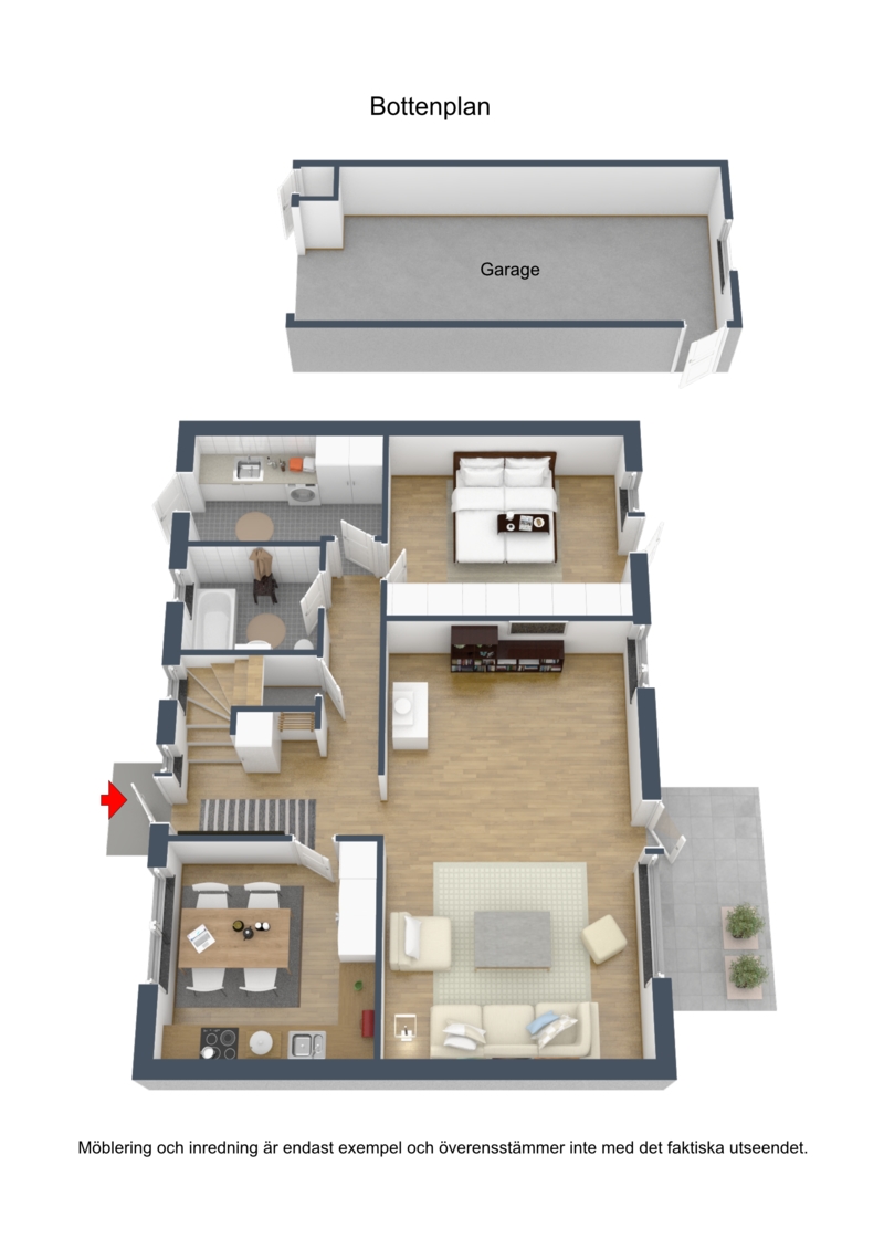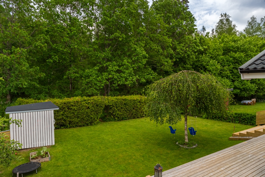 Ett välplanerat 1,5-planshus med avskilda delar i huset för olika behov och umgänge. På entréplan finner vi de sociala ytorna så som vardagsrummet, vilket präglas av en stor och öppen umgängesdel i husets mitt som ger kontakt med uterummet och den härliga trädgården. Här finns en mysig kakelugn. Vardagsrummets fönster är stora och ger ett vackert ljusinsläpp. Vidare finner vi köket med bra arbetsytor och plats för matbord, groventré med tvättstuga, badrum med badkar samt master bedroom med bra förvaringsmöjligheter. På övervåningen avskilt placerat ligger 2 sovrum med möjlighet för ytterligare 2 sovrum om så önskas. Toalett med dusch. Väl omhändertagen villa. Bra tomt med ett stort fristående garage. Bostaden erbjuder ett trevligt och modernt boende. Bra belägen i lugnt villakvarter med närhet till grönområde, skola och övrig service. Bra förbindelse till och från Växjö i form av tåg och buss.
