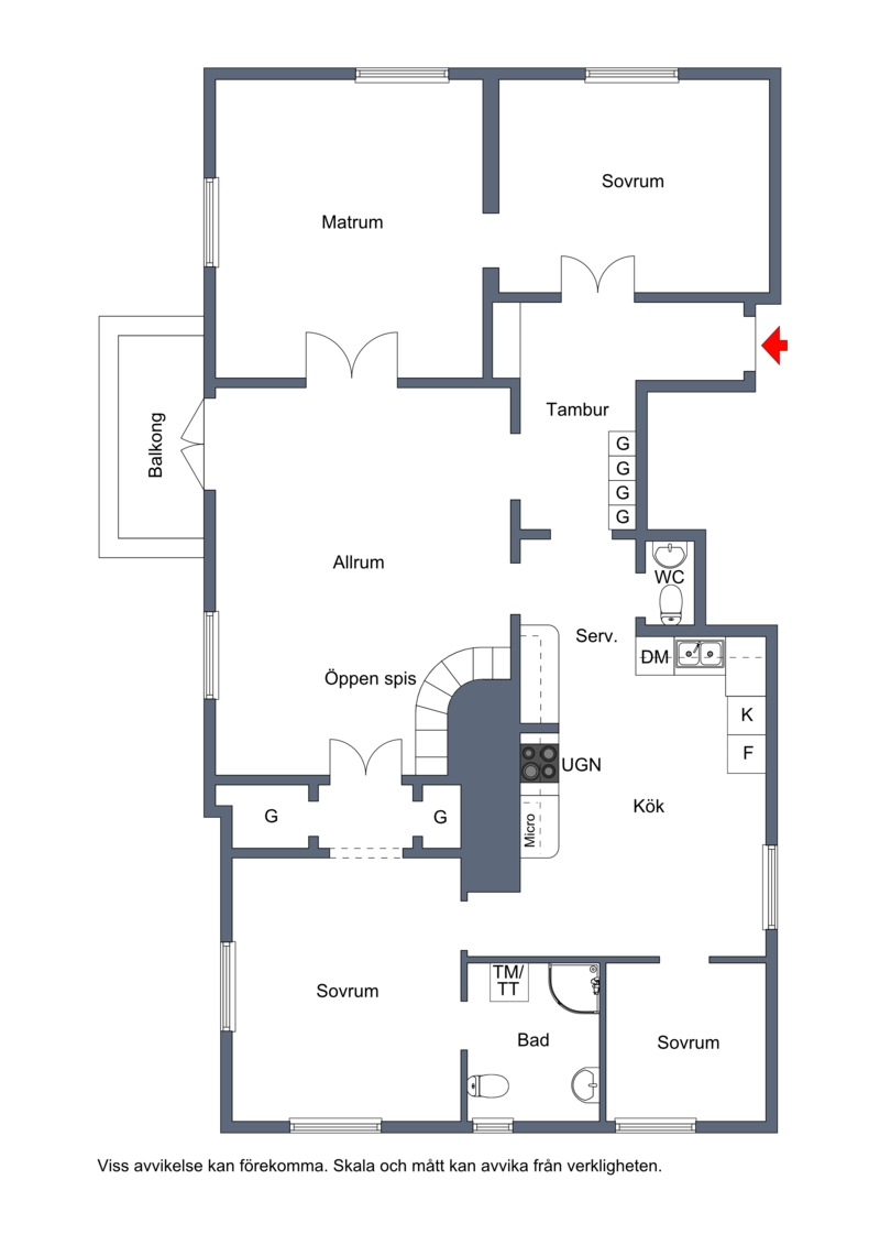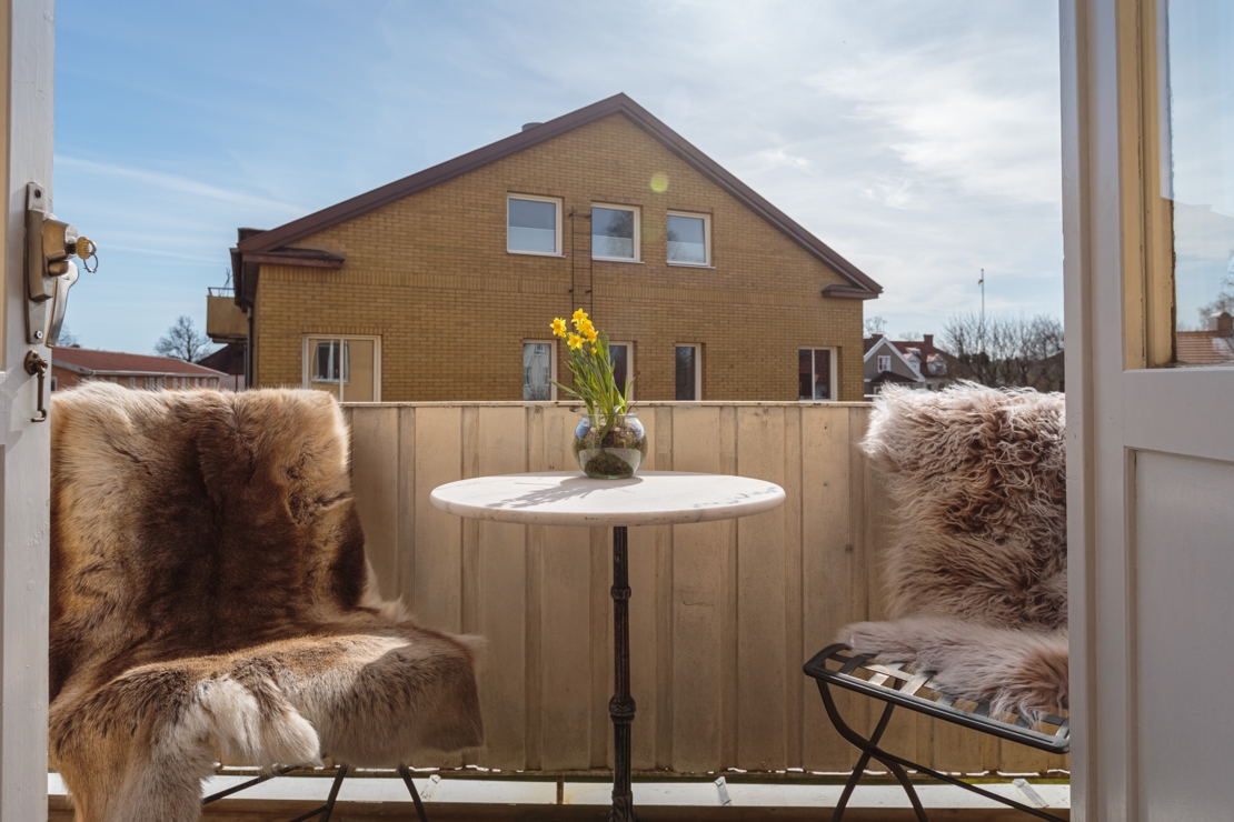 Här har man ett stort allrum med gott om plats för det stora sällskapet. Stora fönsterpartier i söderläge med härligt ljusinsläpp. Fungerande öppen spis som ger maximal mysfaktor. Vackra pardörrar mot sovrum och matrum. Anslutning till balkongen. Vitmålade väggar och ekparkett på golvet.