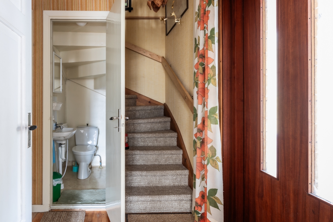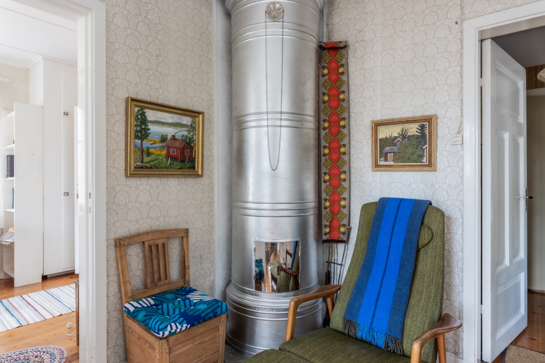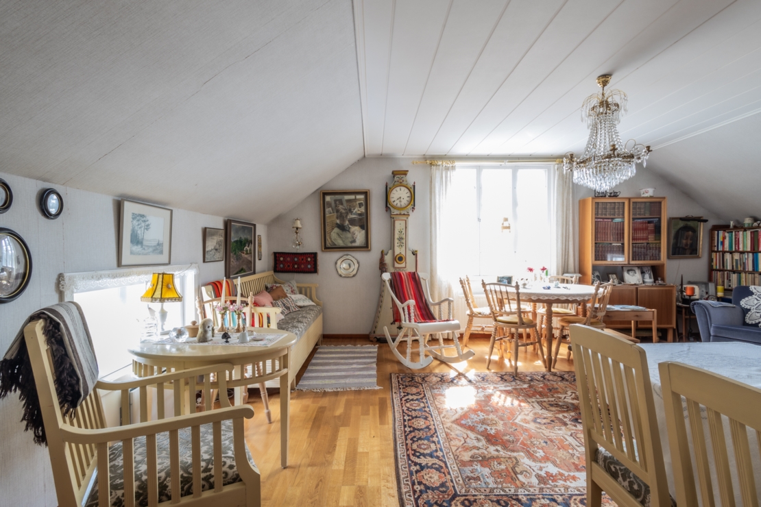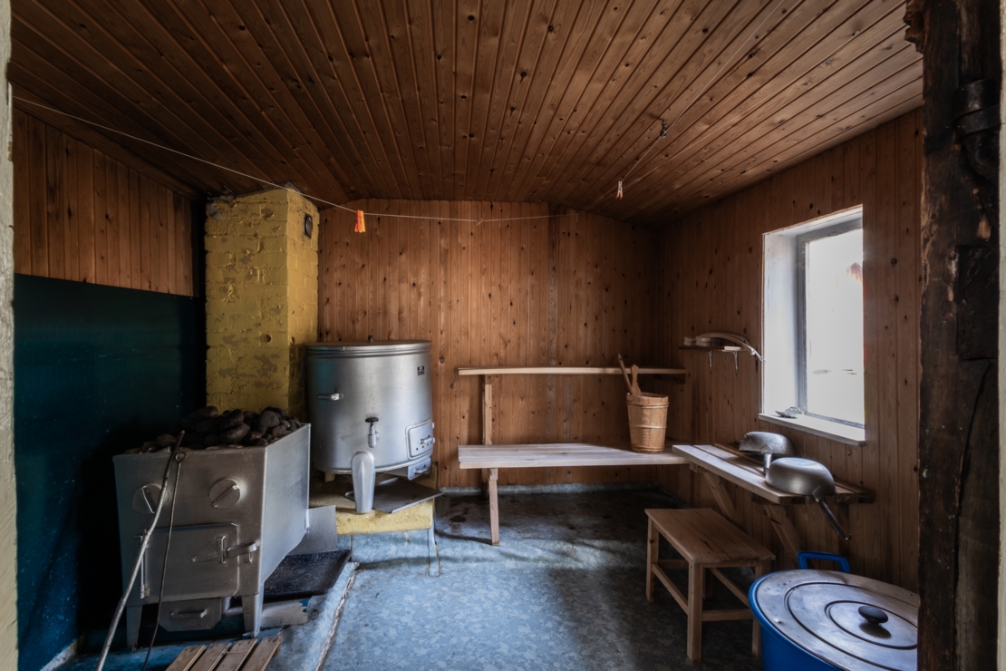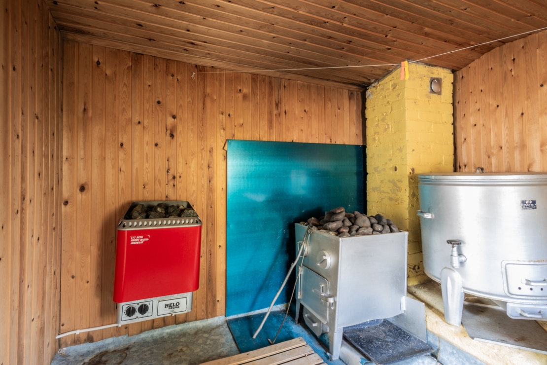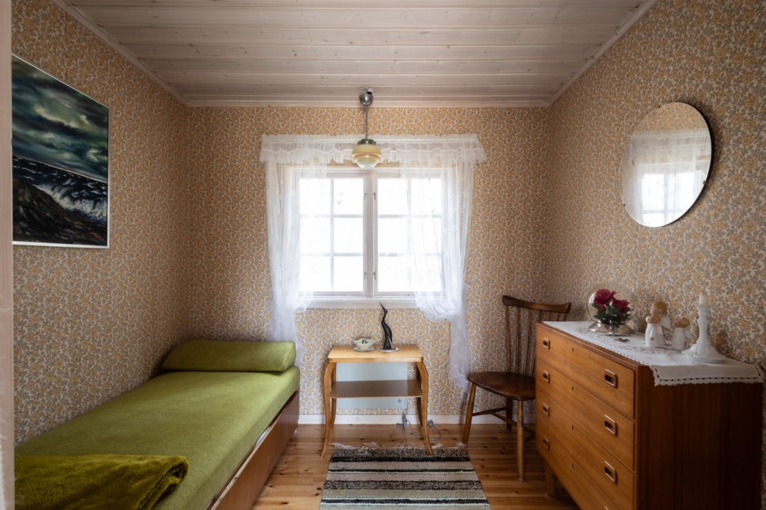 Huvudbyggnaden är i välbevarat skick och har permanentboendestandard. På bottenvåningen finns ett hemtrevligt kök, två fina rum och en toalett. Ett av rummen har en vacker kakelugn (ej besiktad), perfekt för mysiga kvällar. På övre plan hittar du ett större allrum och ett mindre sovrum samt ett badrum. (Observera att järnspisen i köket för närvarande är ur funktion.)
