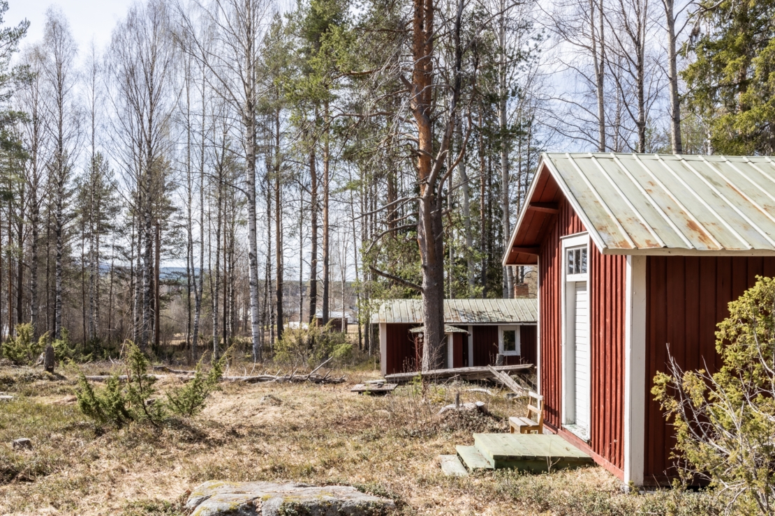 Mitt på gården finner du en mindre stuga med torpargrund. Denna stuga har 2-glasfönster och värms upp med direkt el och en öppen spis (ej besiktad). Detta tillägg ger ytterligare flexibilitet och möjligheter för boende eller förvaring.