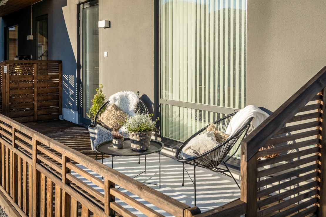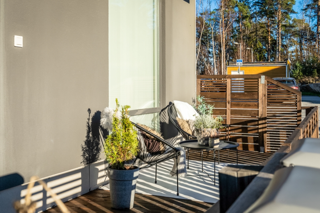 till egen uteplats och balkong. Här erbjuds ett ljust och välplanerat boende med