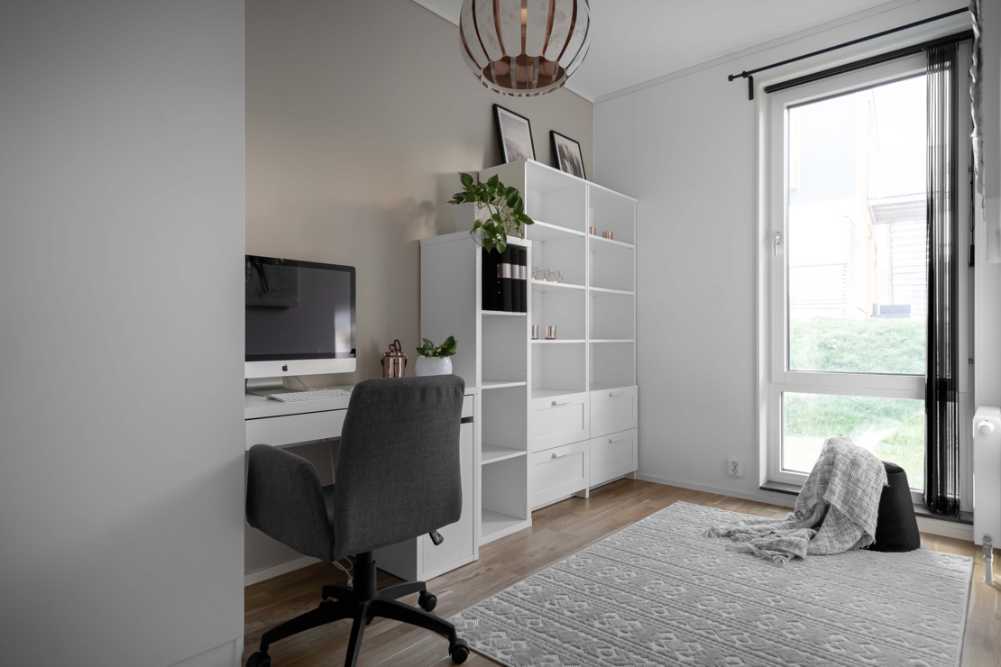Välkomnade hall med gott om förvaring i öppen planlösning med vardagsrum och kök i direkt anslutning till den härliga uteplatsen i bästa sol läge med vy över självaste Smultronplan. Kök i ljusa fräsha färger utrustat med kyl/frys, ugn, spis, micro samt diskmaskin. Sovrum med ljusinsläpp i två väderstreck samt med gott om förvaring i stor garderobsvägg. Arbetsrum/sovrum med utsikt mot husets baksida med förvaringsmöjlighet i fastbyggda garderober. Helkaklat och ljust badrum utrustat med värmegolv, handdukstork, tvättmaskin, torktumlare samt duschhörna. Med lägenheten följer ett förråd.