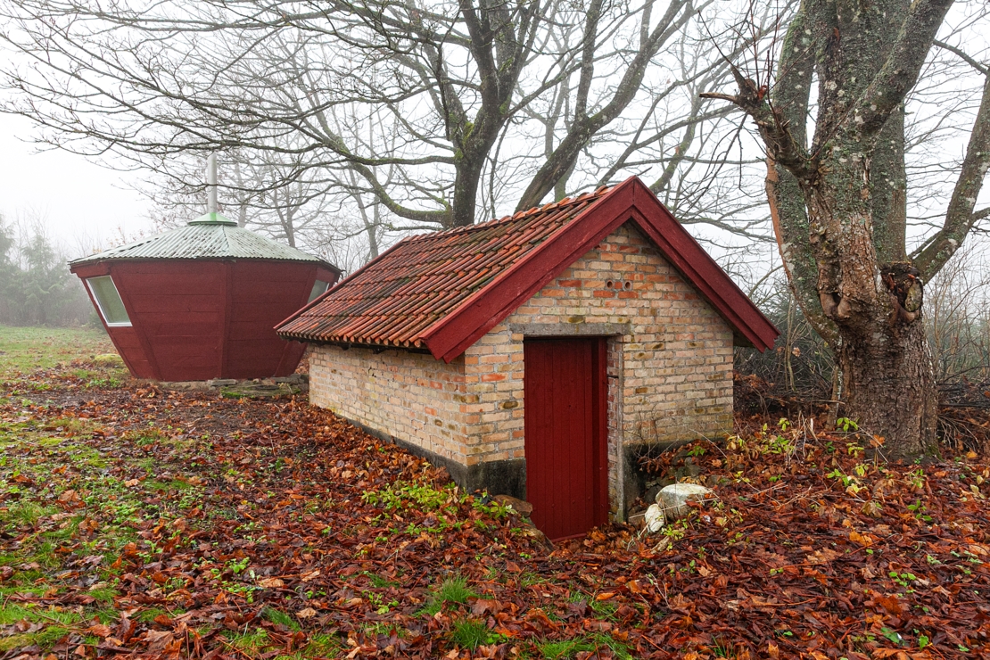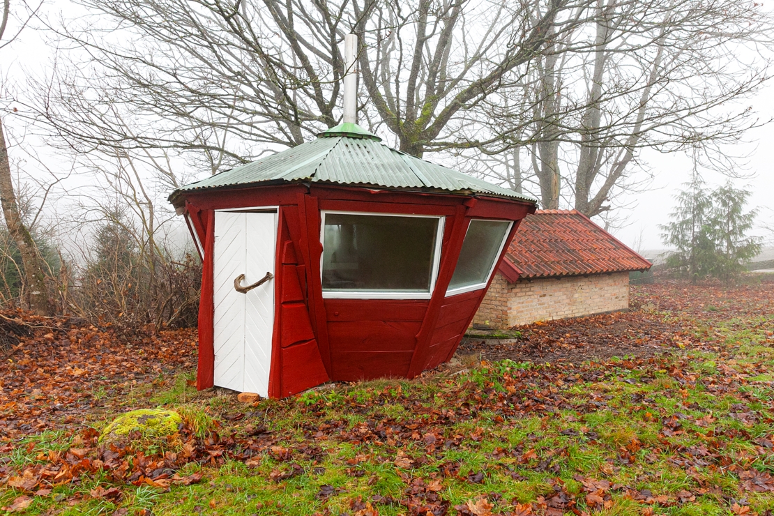 Garage med dubbeldörrar samt el och möjligheter till verkstad till hobbyverksamhet eller förvaring. Lusthus i trä med indragen el, bänkar och grillplats. Förråd/skafferi i tegel med indragen el.
