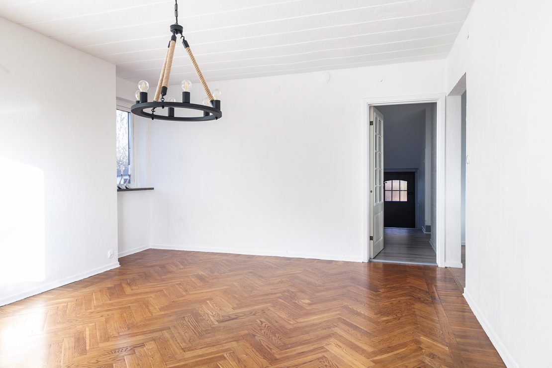 Ni välkomnas till ett gediget byggt hus med stor tomt om ca 887kvm, garage med dubbeldörrar, stor uppfart, stor och härlig trädgård för barnen att springa fritt på. Som grädde på toppen så har även det mysiga uterummet renoverats samt byggt till ett träddäck med räcke för att enkelt kunna blicka ut över trädgården med en varm kopp kaffe i handen. Utöver detta har nuvarande ägare även gett bostaden ett lyft genom att b.la målat fasaden, garaget, alla innervägar samt renoverat både badrum och toalett.