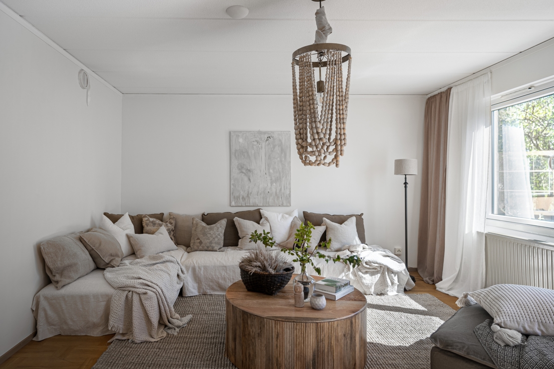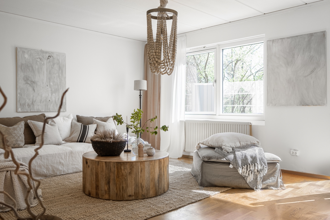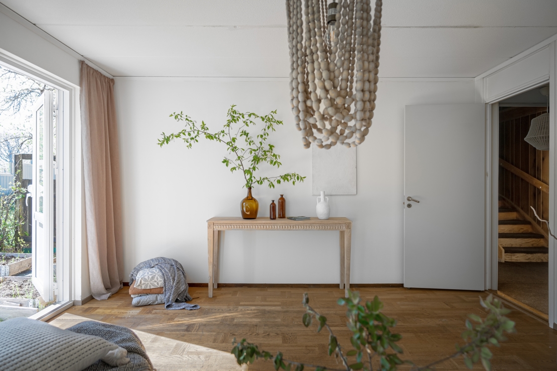 Stort och lättmöblerat rum där det finns gott om plats för större soffgrupp och TV-möbel. Från vardagsrummet når ni den platsbyggda altanen, följt av härlig trädgård i ogenerat läge.