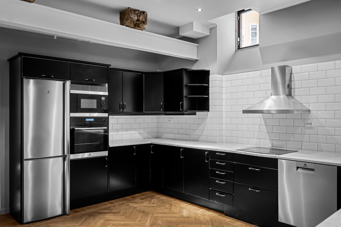 godkänd/besiktigad ventilation för kök och våtrum installerad. Grannlägenheter besiktigades före och efter ombyggnation.