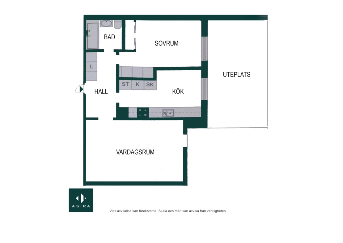 Här har du effektiva 56 kvm med separat kök, stort sovrum och vardagsrum med stora fönster. En gigantisk uteplats som du når från vardagsrummet med plats för allehanda möblemang och grillmöjligheter (ej kolgrill). Bra med förvaring i bostaden, samt ett vindsförråd!