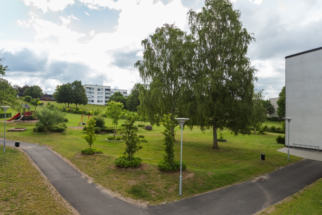 2016 Omfattande arbete med utemiljön med ny asfalt, nya gångvägar och planteringar.