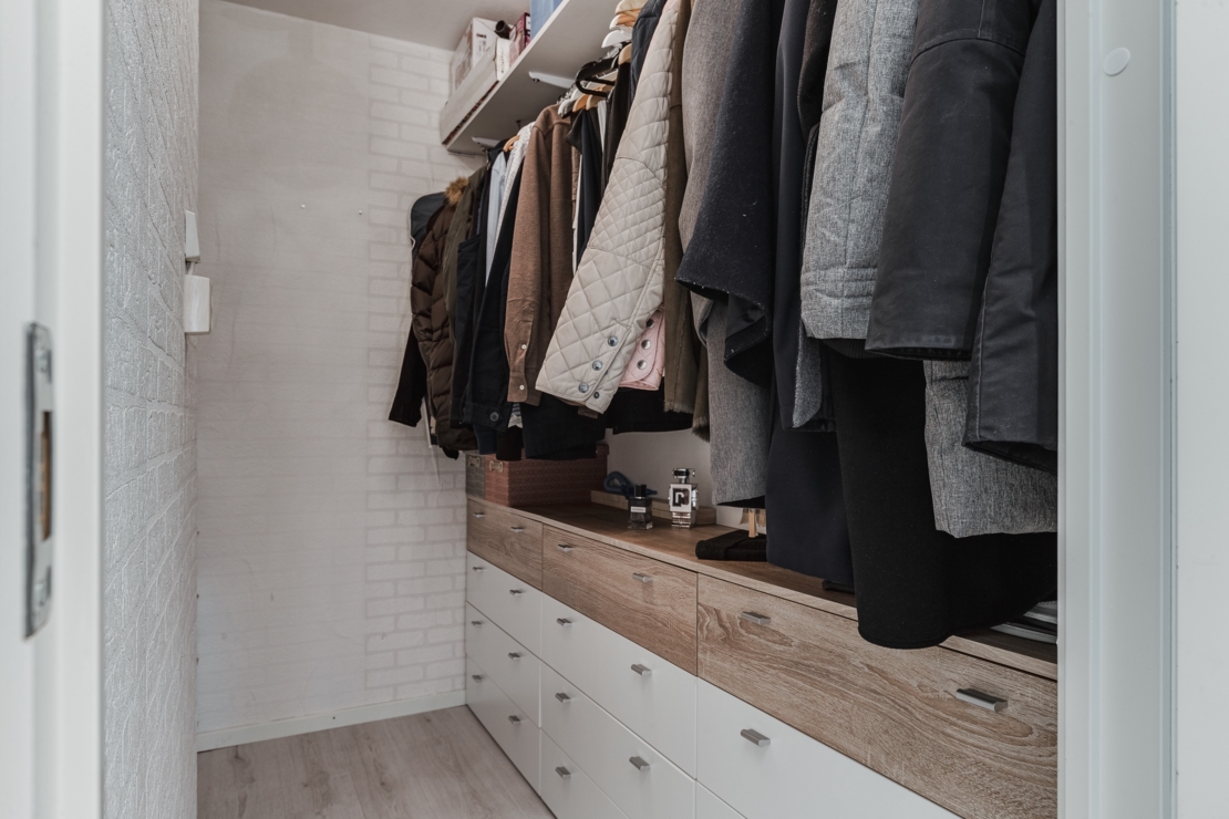 En känsla av en större och lyxigare garderob precis intill entrén med gott om plats.