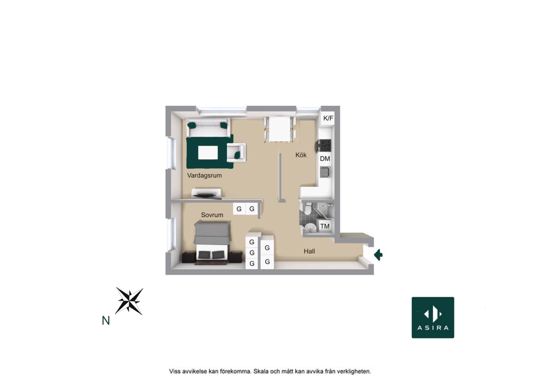 Entré med goda avhängningsmöjligheter och förvaring.