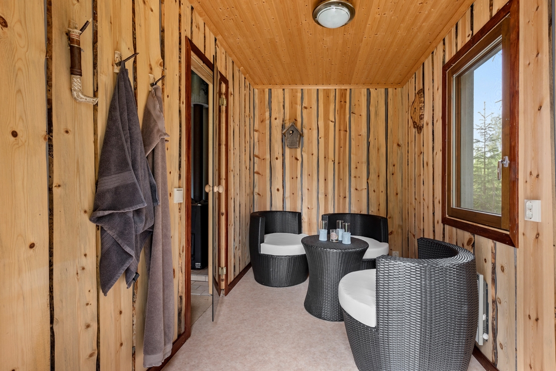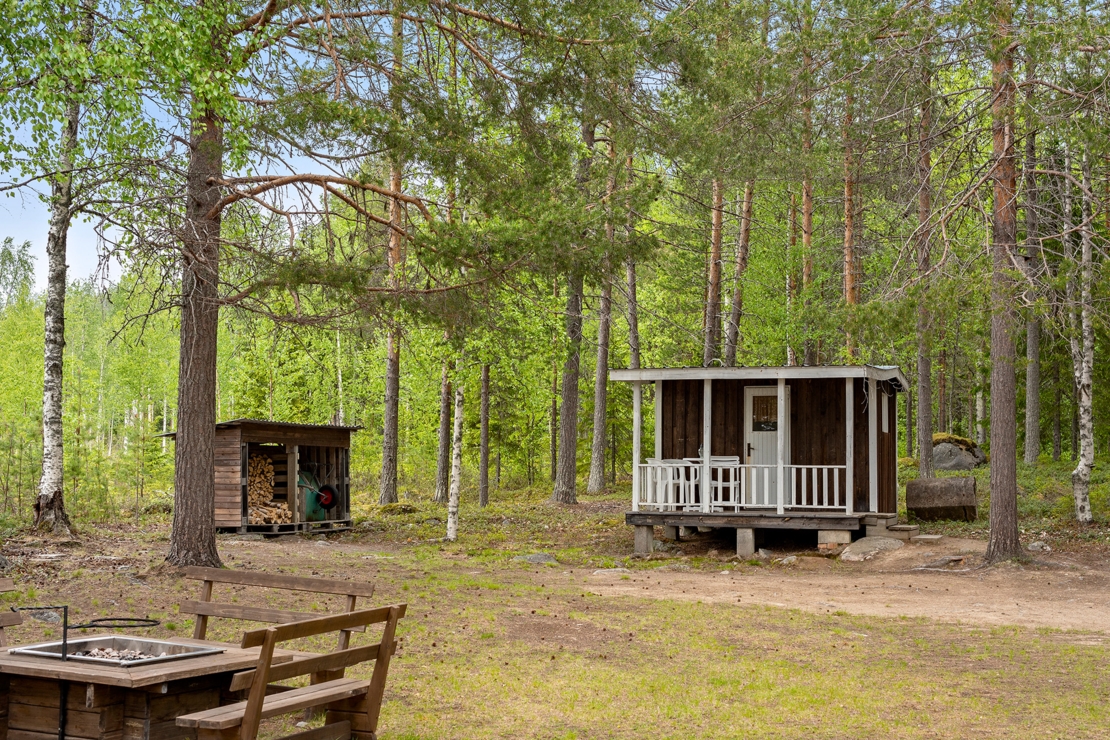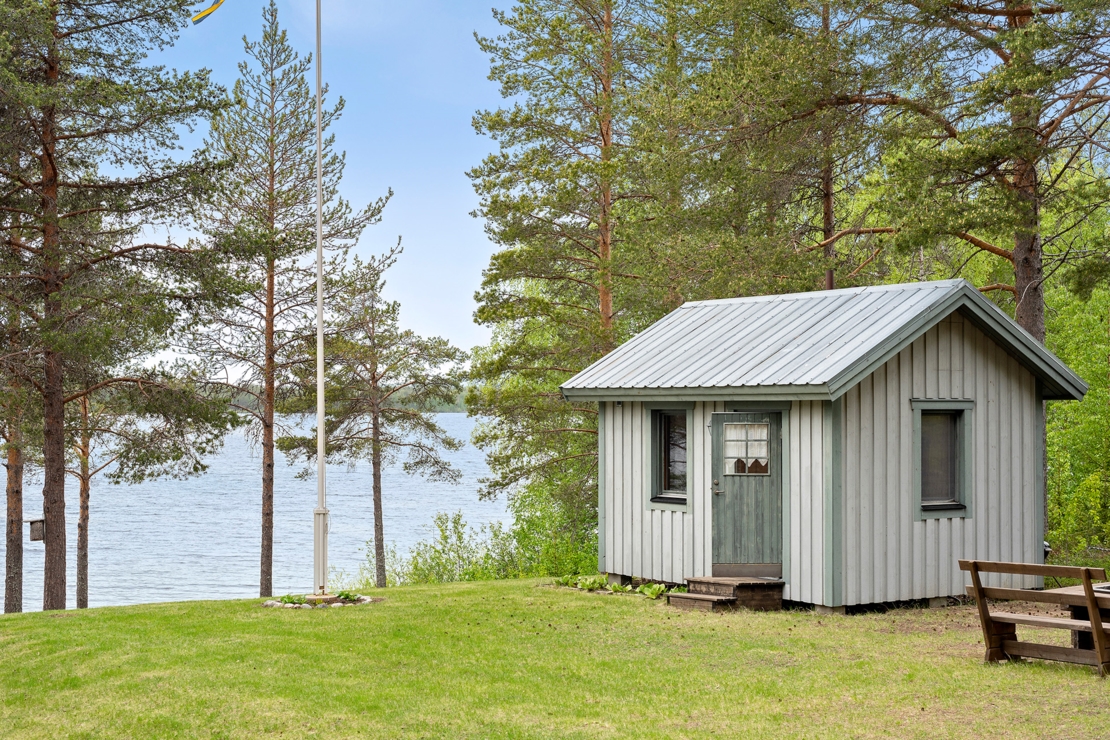 På tomten finns även en fräsch, vedeldad bastu med relaxavdelning i vildmarksstil, eldstad, vedskjul, flaggstång och en ca 8 kvm stor sovstuga också i bra skick.