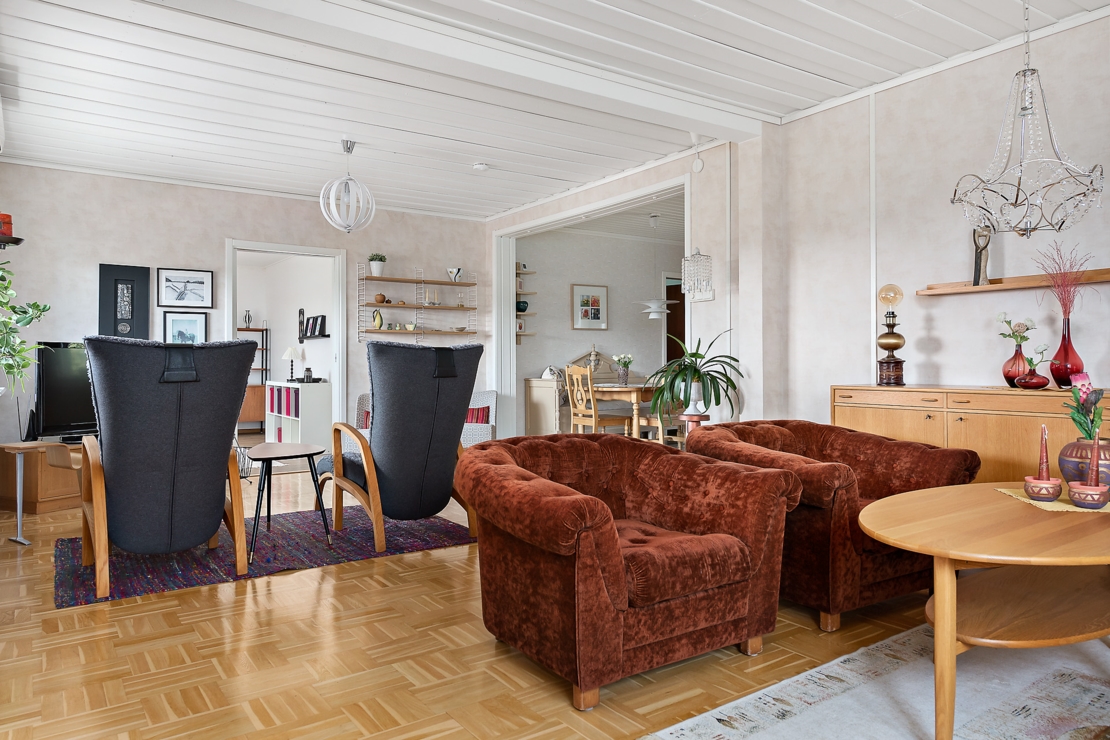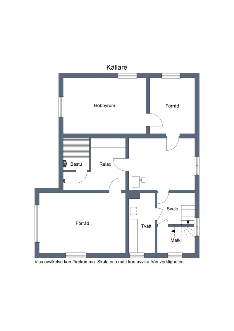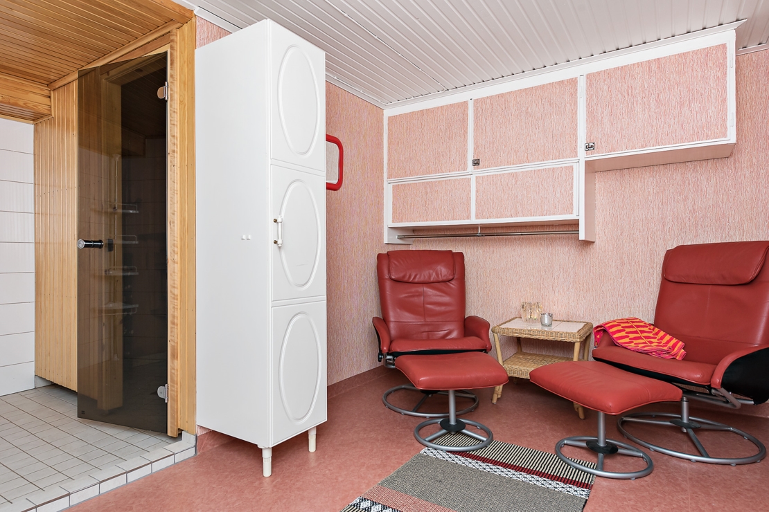 I källaren ligger relaxavdelning med bastu och dusch, tvättstuga, gillestuga och förråd.