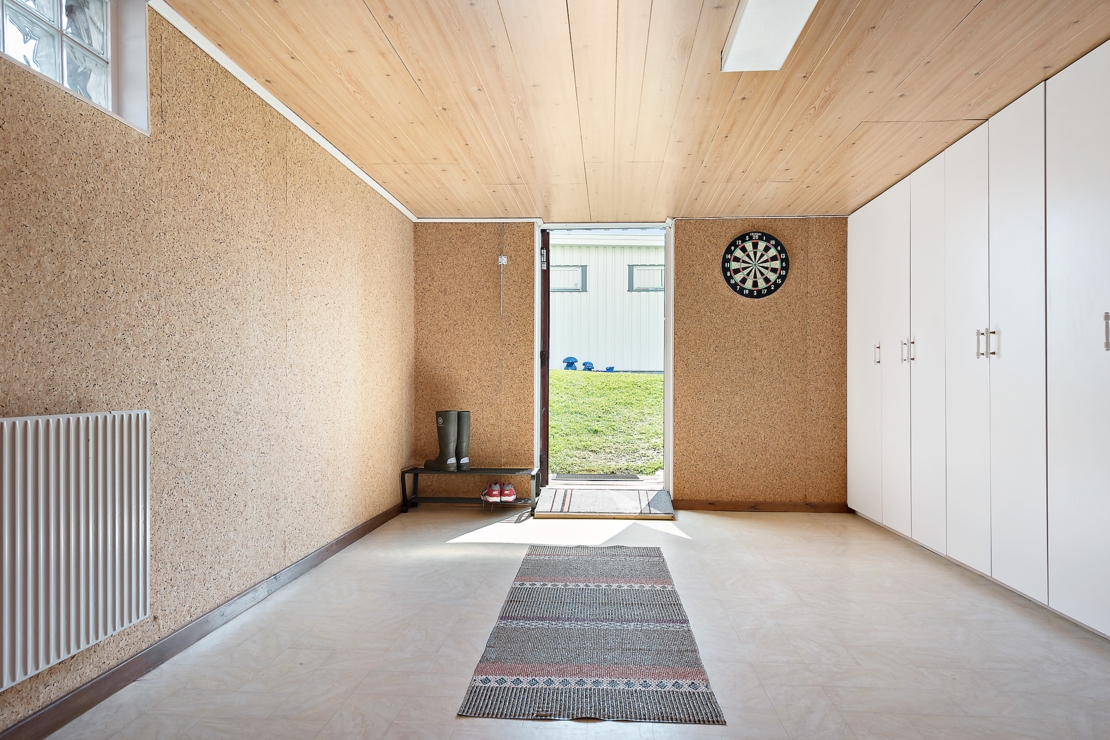 På den stora tomten finns även ett isolerat dubbelgarage och ett ca 20 kvm stort förråd. Välskött trädgård med röd- och svartvinbärbuskar och många olika blommor.