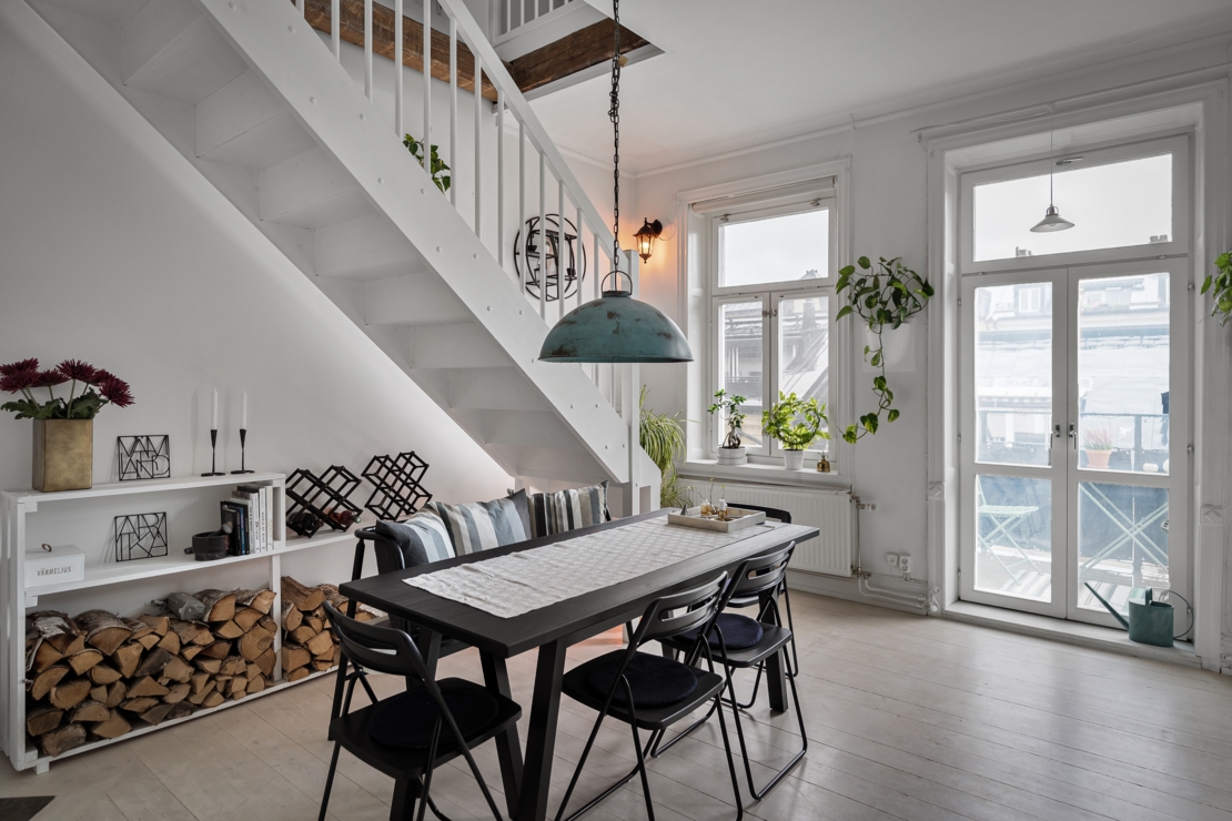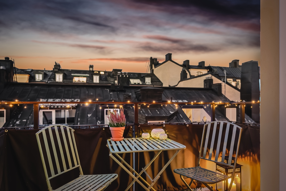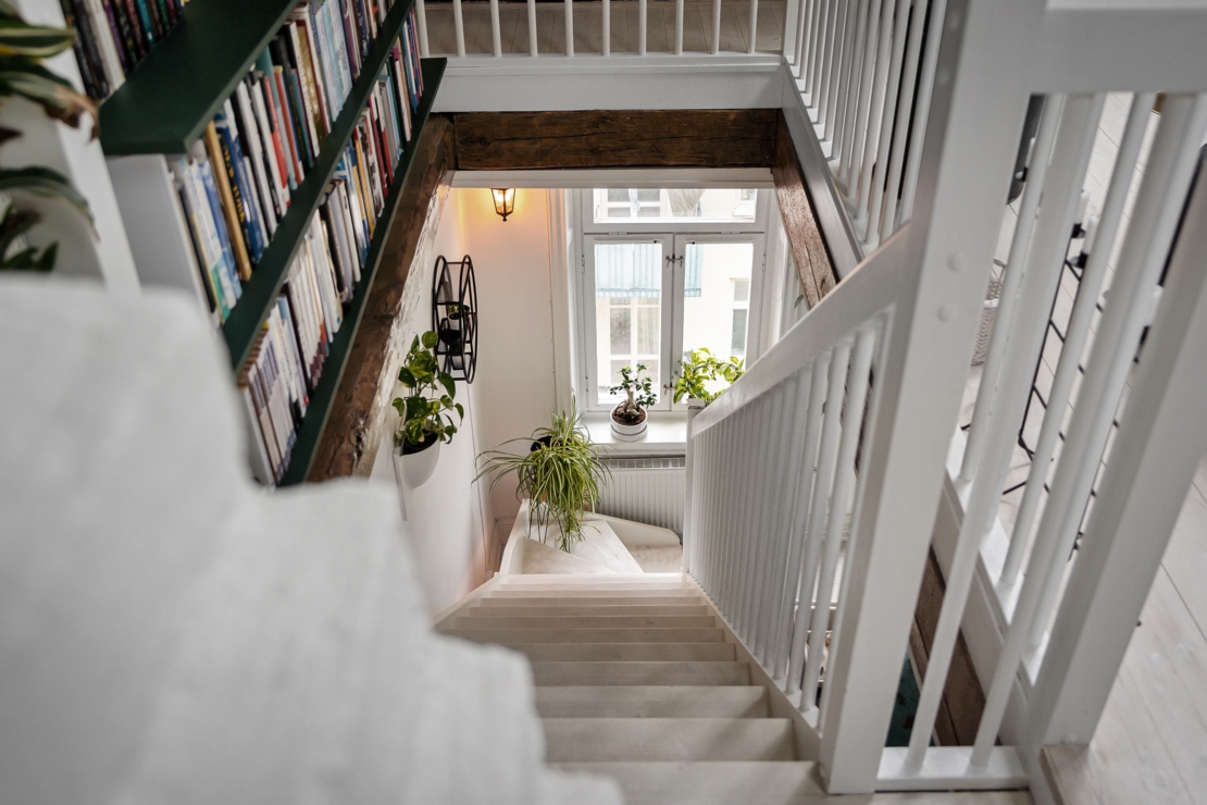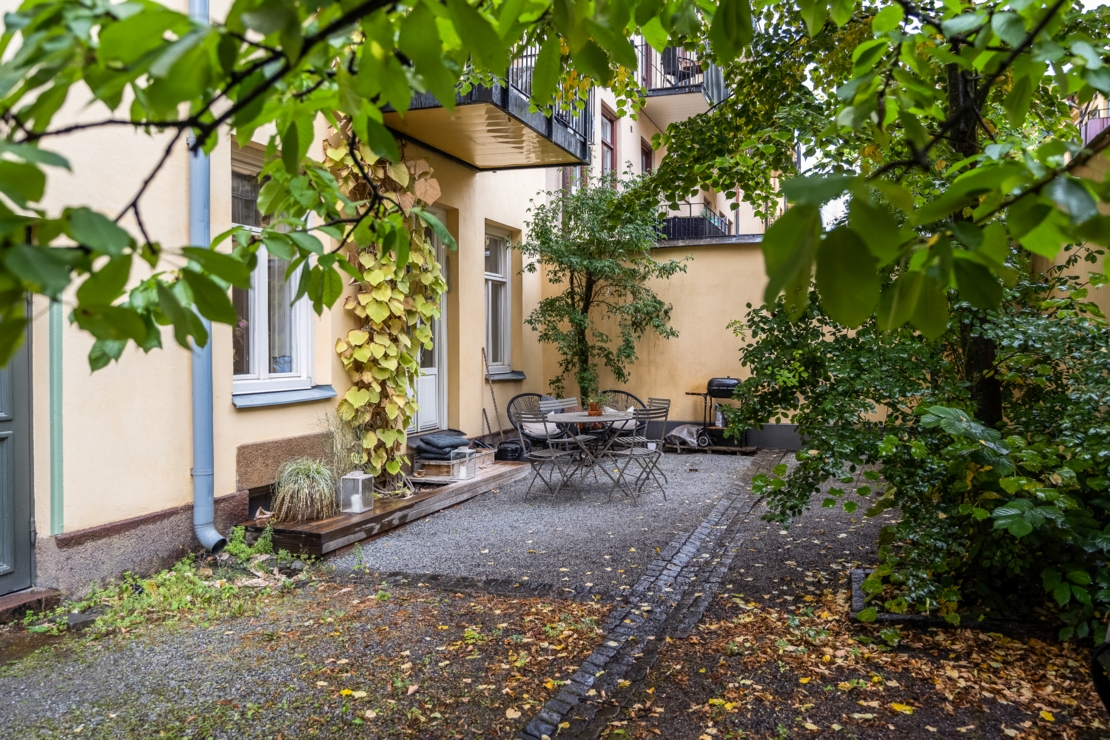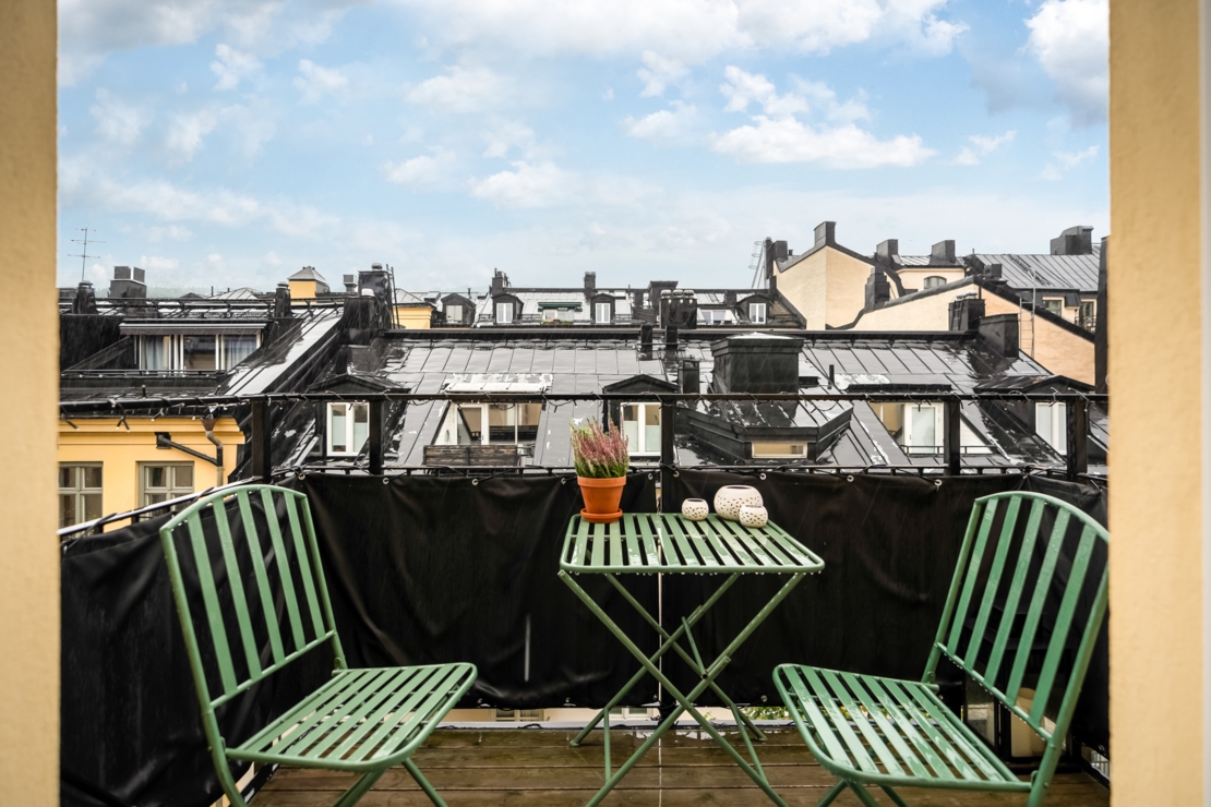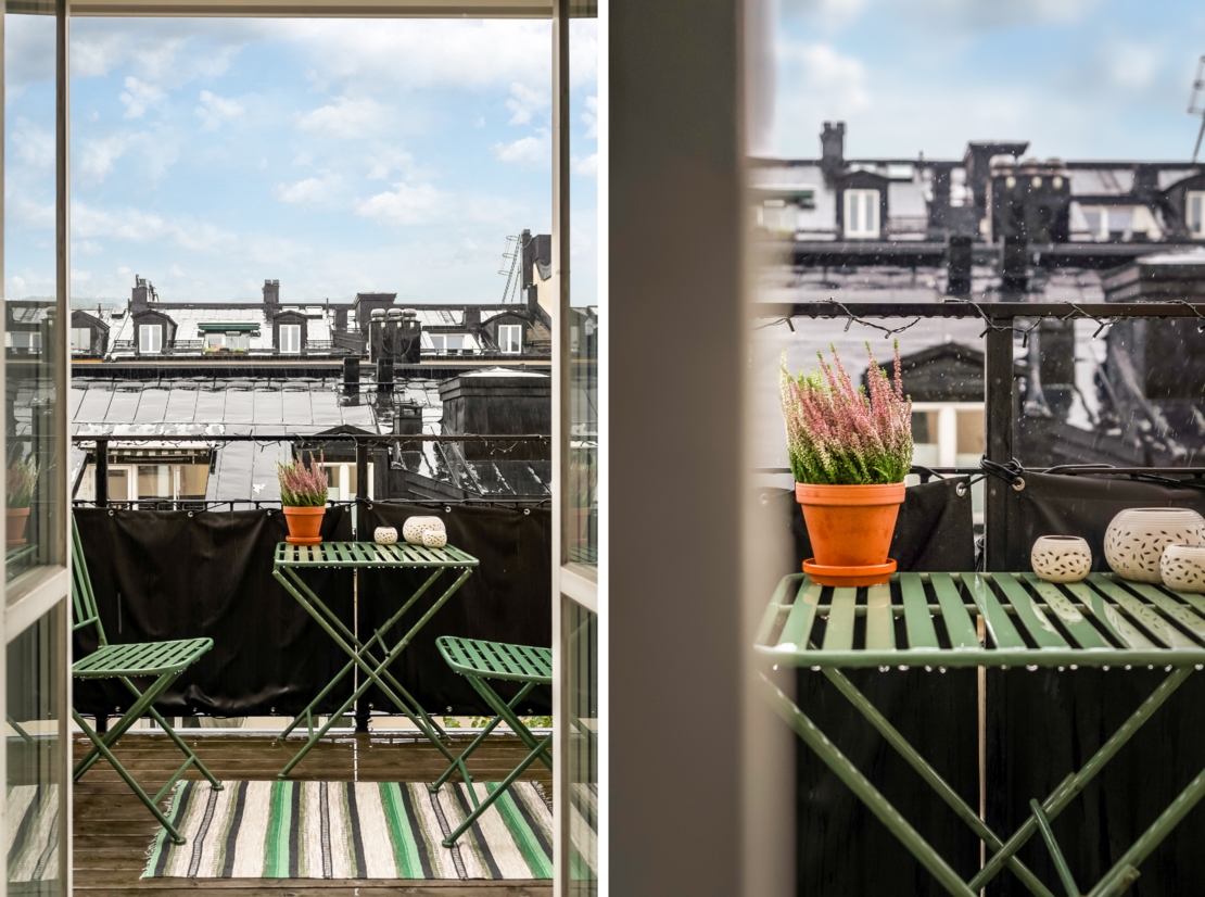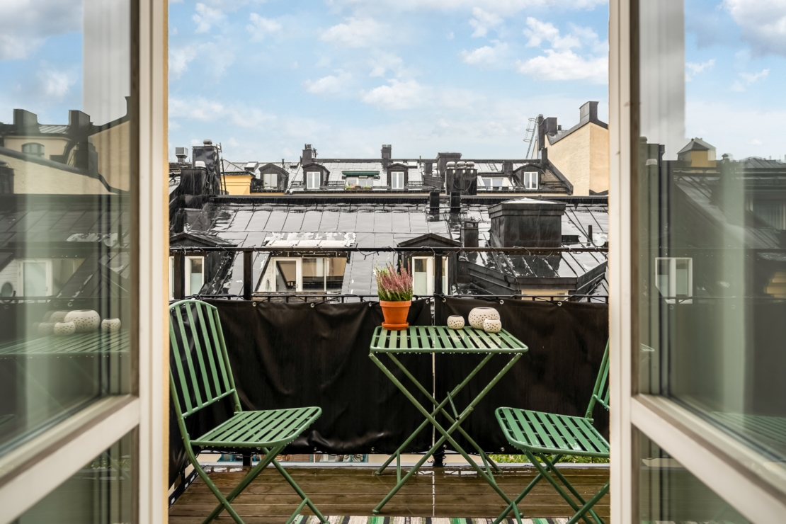 Underbar sekelskiftesvind i etage med balkong mot gård
