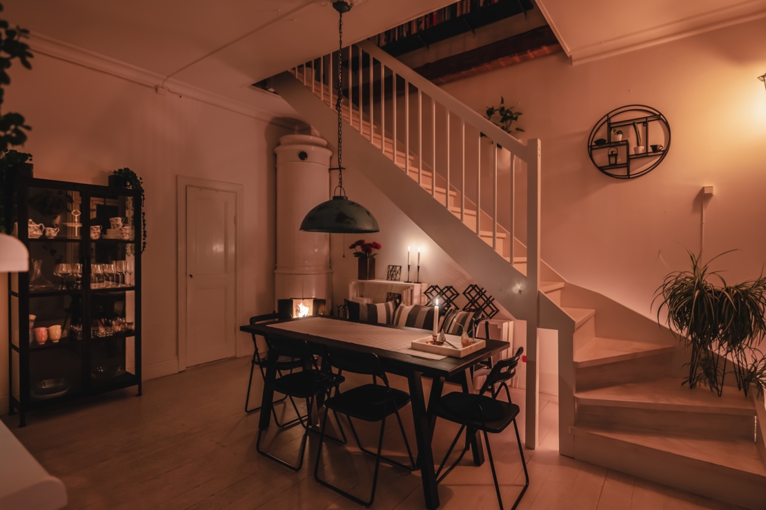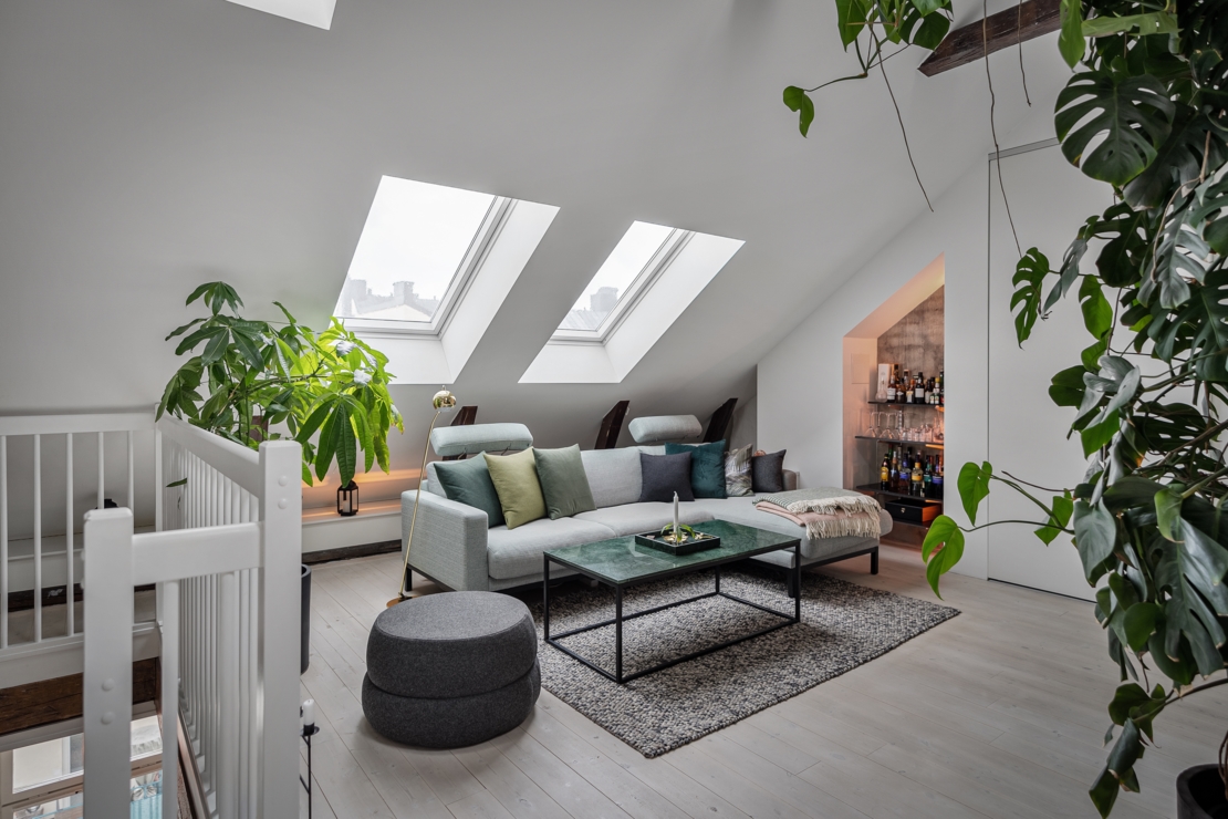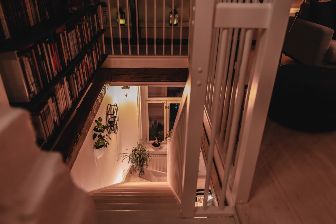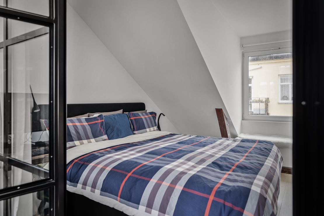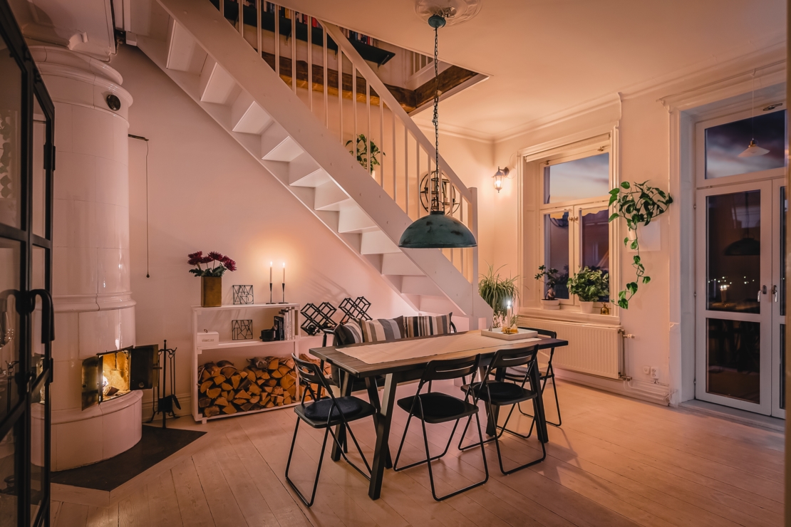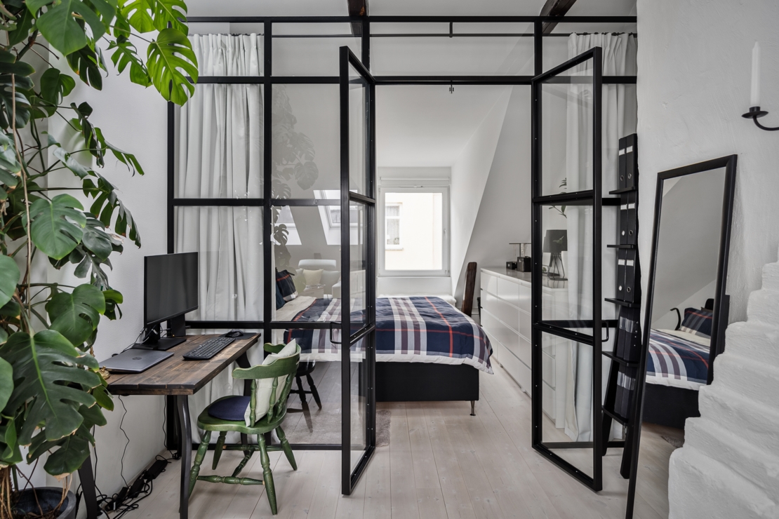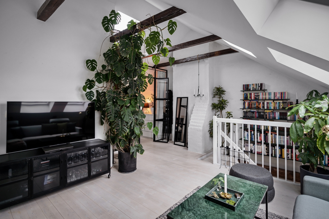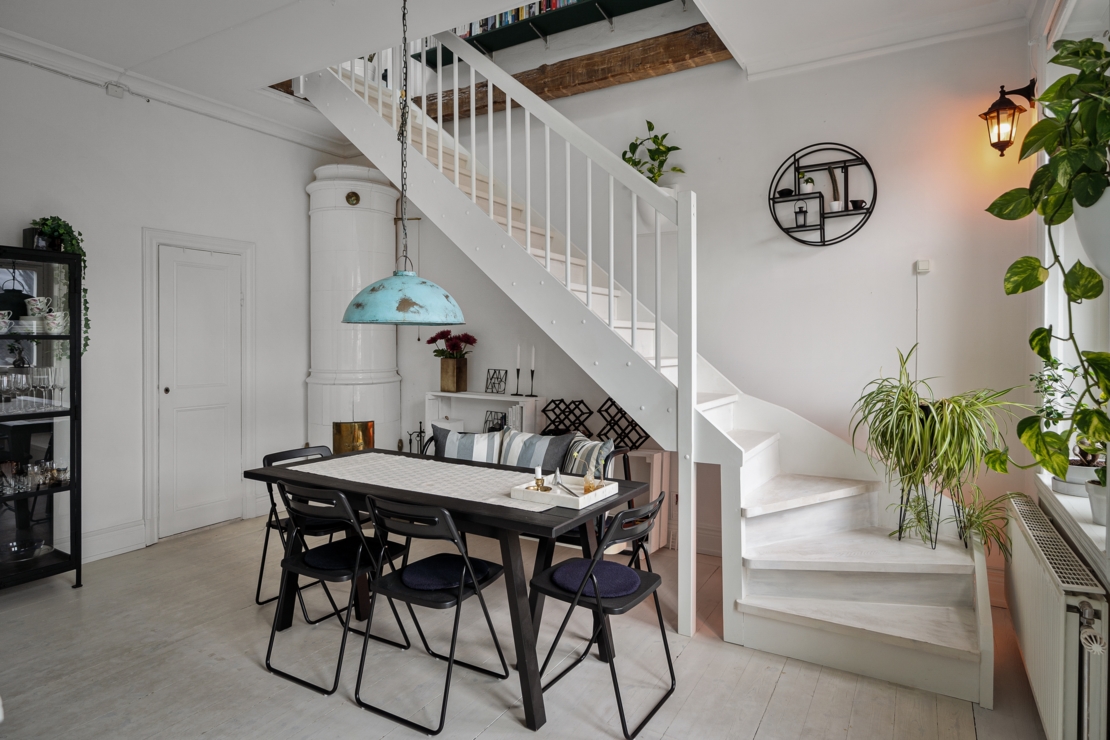 Underbar sekelskiftesvind i etage med balkong mot gård