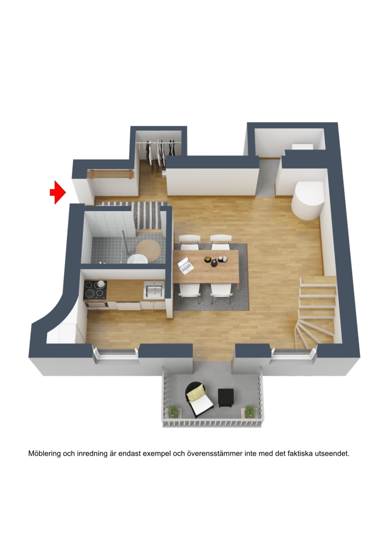 Till varje lägenhet hör ett källar- eller vindsförråd.